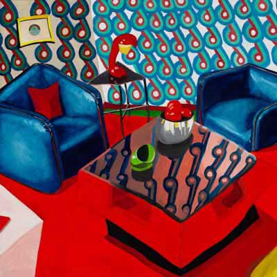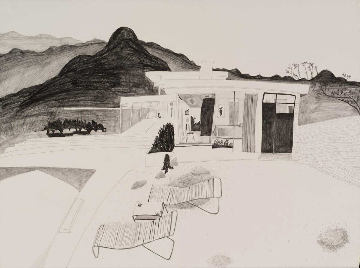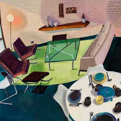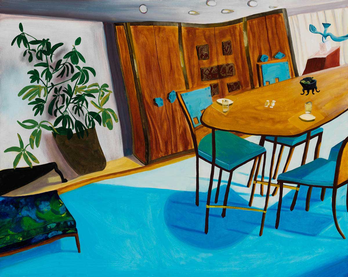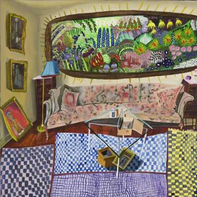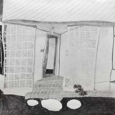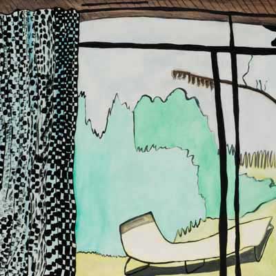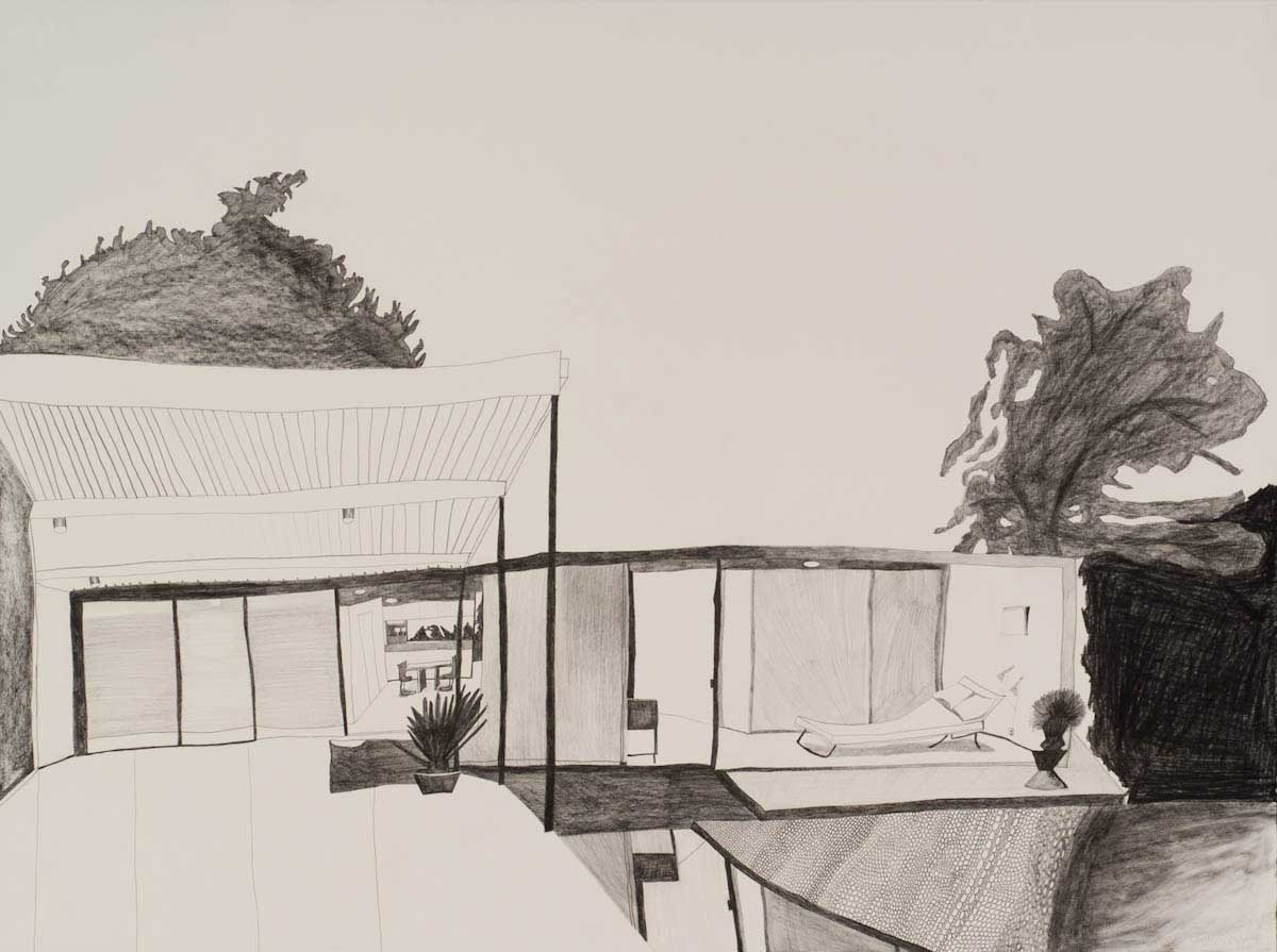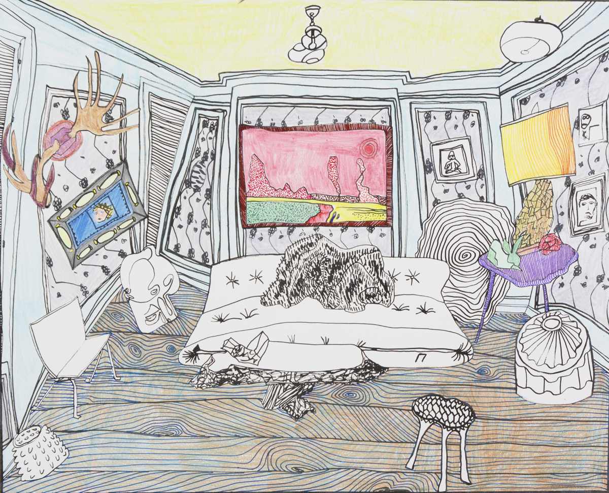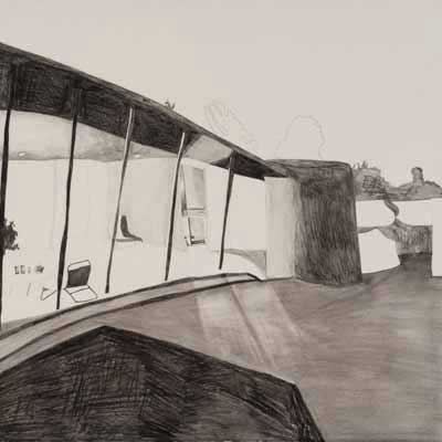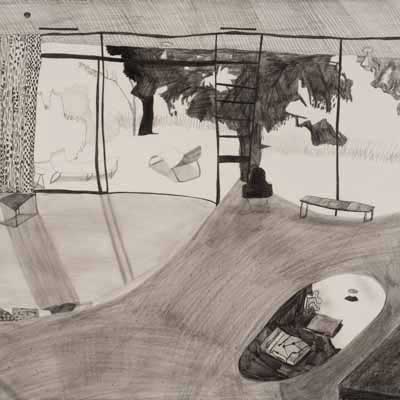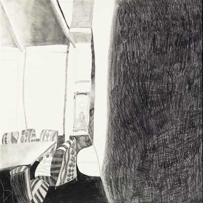 Gallery-Ox-Bow Centennial: Historic. In the East Wing of the gallery, CvsD spotlights new work by Chicago artist Gabrielle Garland. Garland’s intimate paintings focus on interior spaces – brilliantly colored, delightfully warped unpopulated domestic scenes. Her larger, slightly Hockneyesque graphite drawings feature landscape and architecture, with a dazzling range of marks from wild and expressionistic to fastidious and precise.