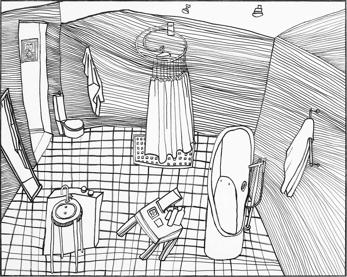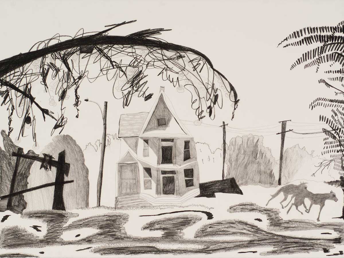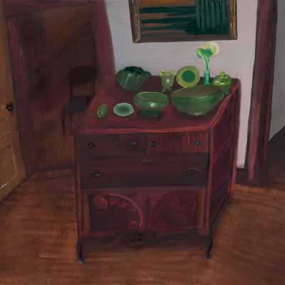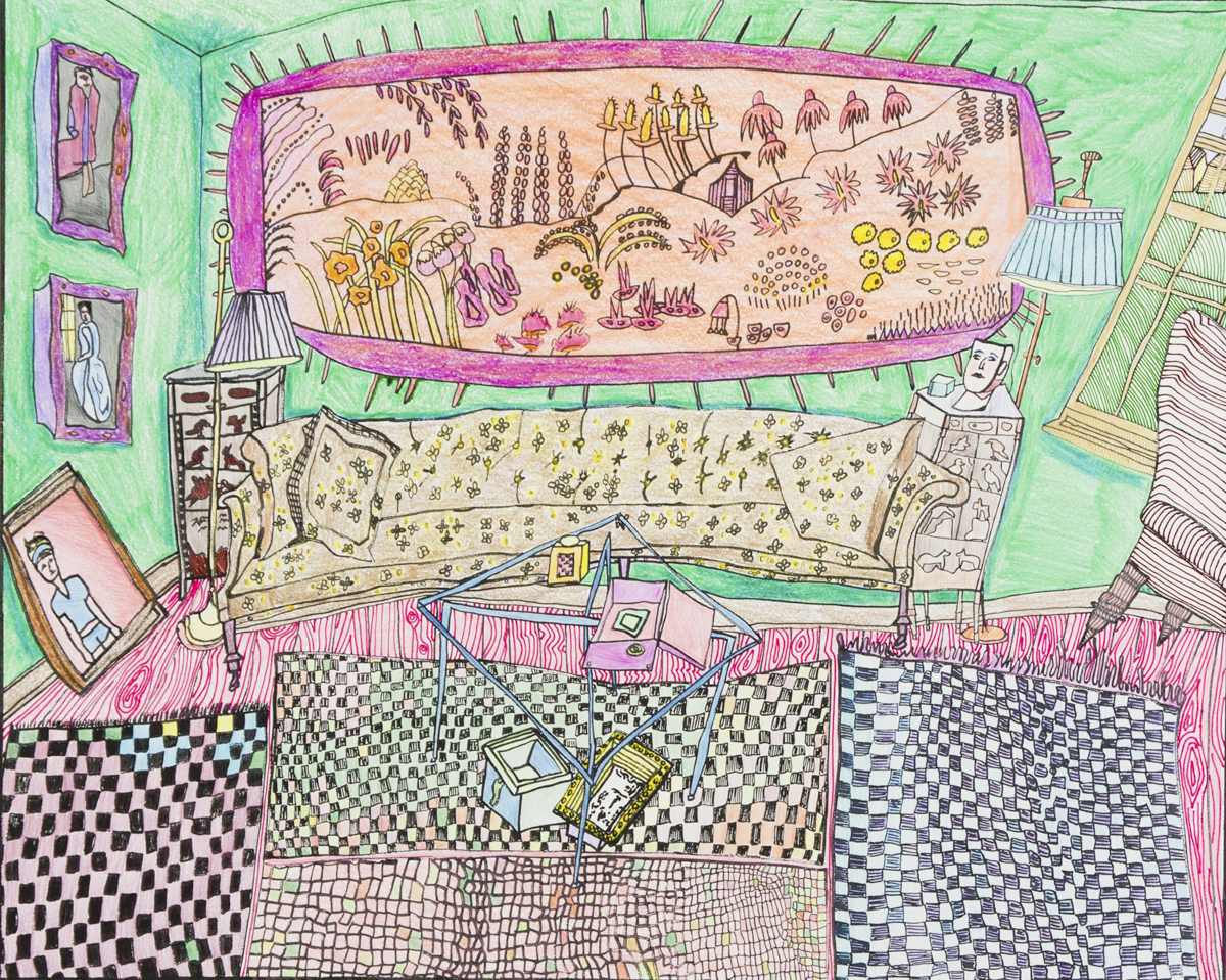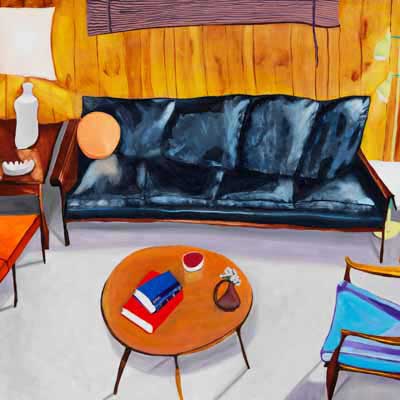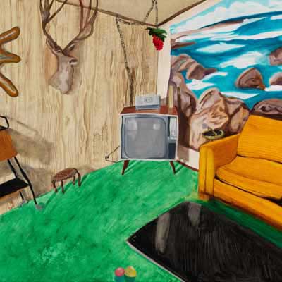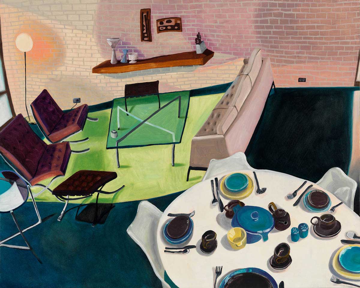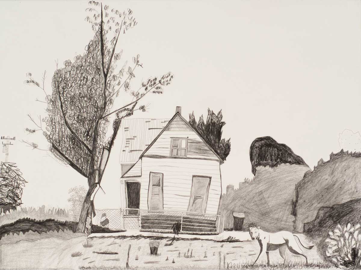 Gallery-Ox-Bow Centennial: Historic. In the East Wing of the gallery, CvsD spotlights new work by Chicago artist Gabrielle Garland. Garland’s intimate paintings focus on interior spaces – brilliantly colored, delightfully warped unpopulated domestic scenes. Her larger, slightly Hockneyesque graphite drawings feature landscape and architecture, with a dazzling range of marks from wild and expressionistic to fastidious and precise.