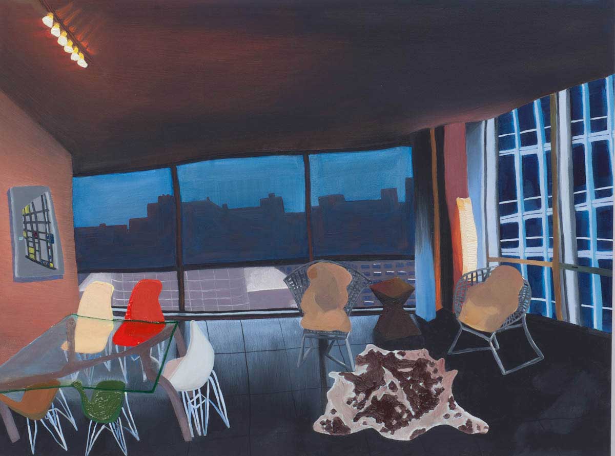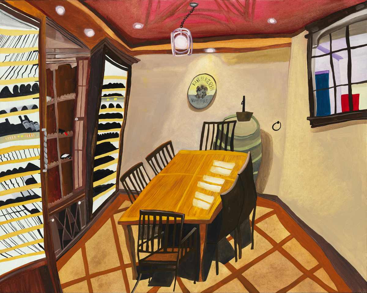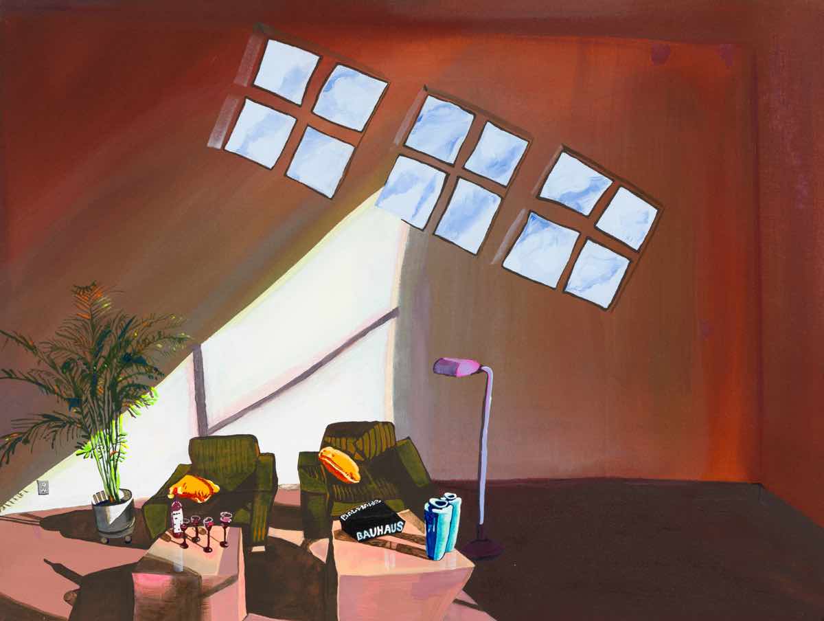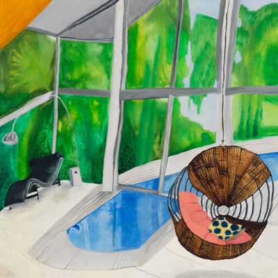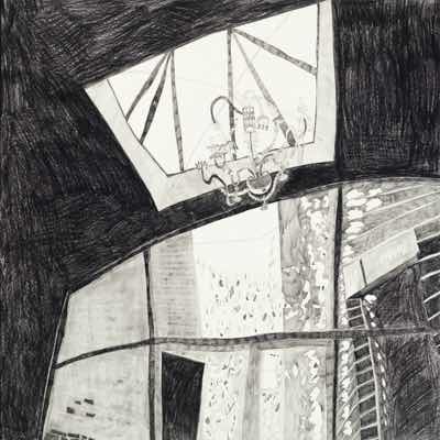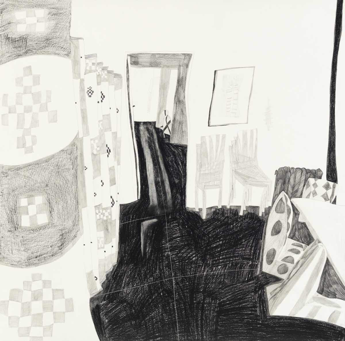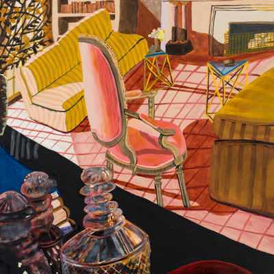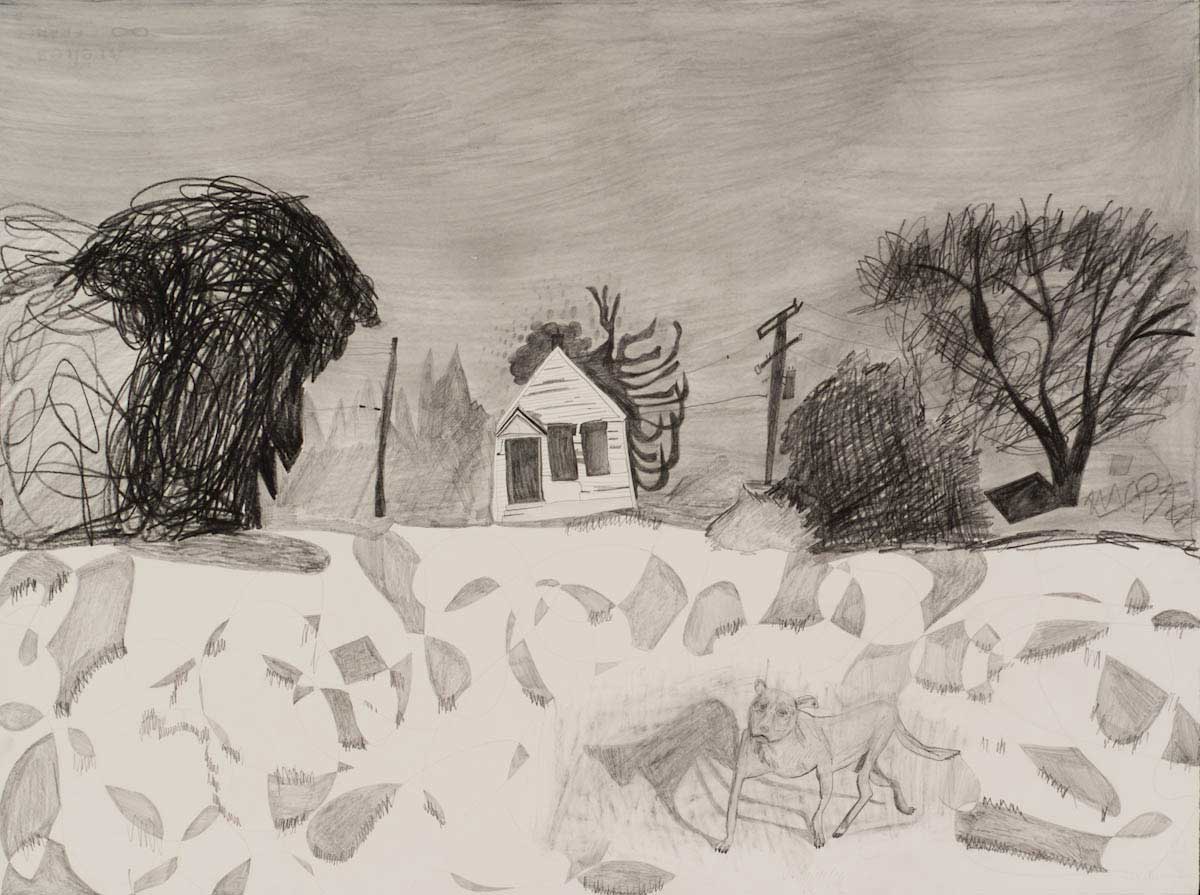 Gallery-Ox-Bow Centennial: Historic. In the East Wing of the gallery, CvsD spotlights new work by Chicago artist Gabrielle Garland. Garland’s intimate paintings focus on interior spaces – brilliantly colored, delightfully warped unpopulated domestic scenes. Her larger, slightly Hockneyesque graphite drawings feature landscape and architecture, with a dazzling range of marks from wild and expressionistic to fastidious and precise.