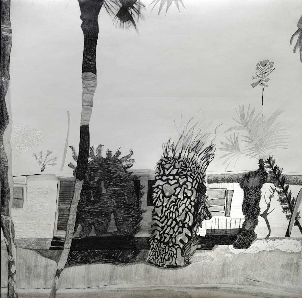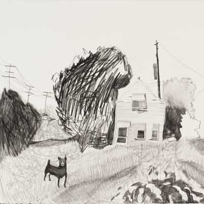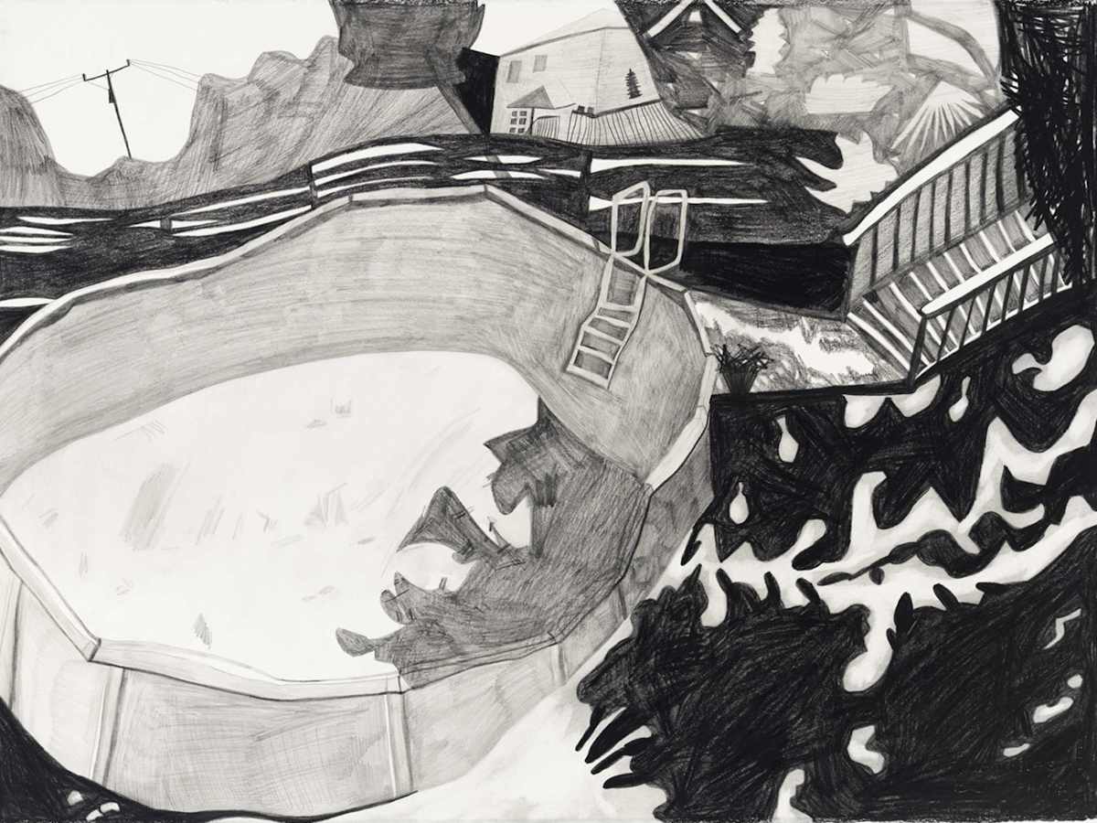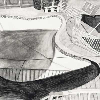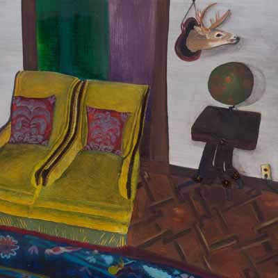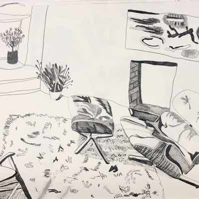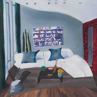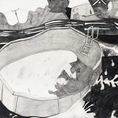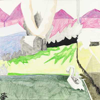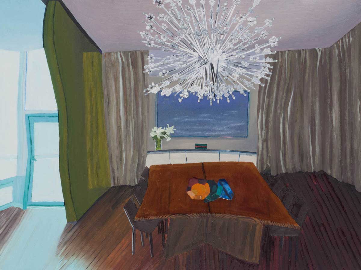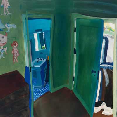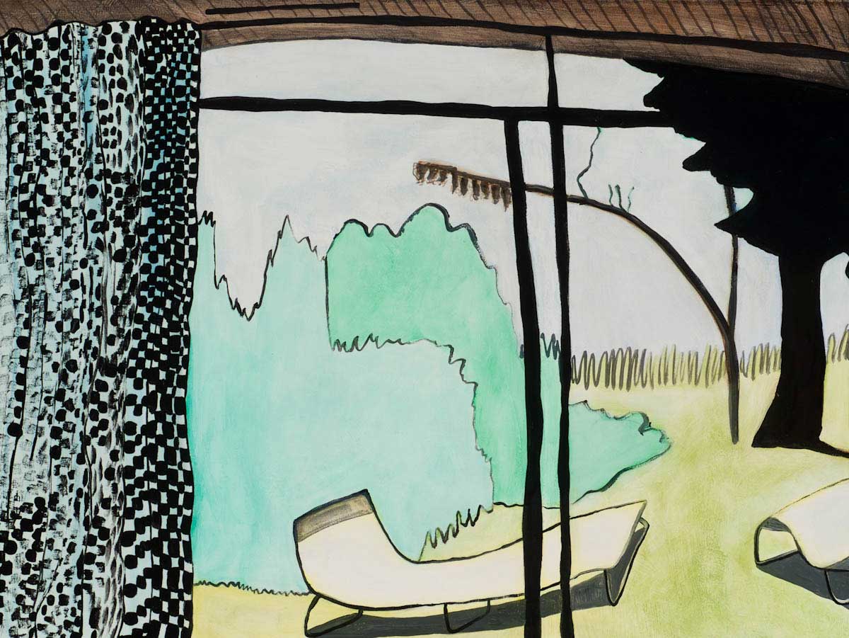 Gallery-Ox-Bow Centennial: Historic. In the East Wing of the gallery, CvsD spotlights new work by Chicago artist Gabrielle Garland. Garland’s intimate paintings focus on interior spaces – brilliantly colored, delightfully warped unpopulated domestic scenes. Her larger, slightly Hockneyesque graphite drawings feature landscape and architecture, with a dazzling range of marks from wild and expressionistic to fastidious and precise.
