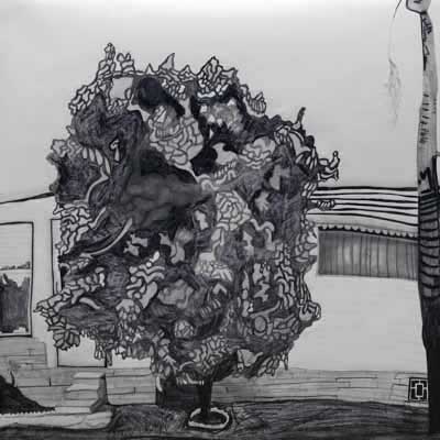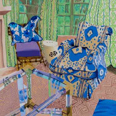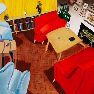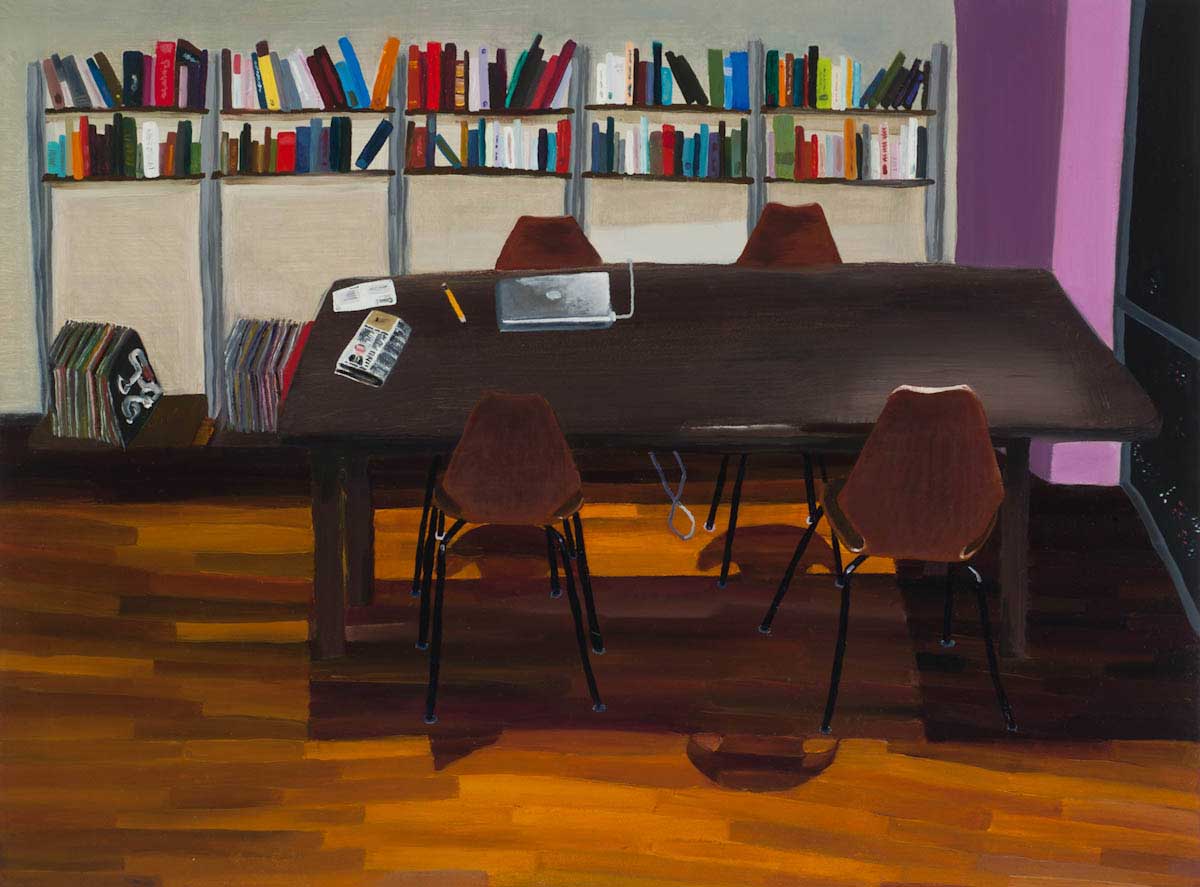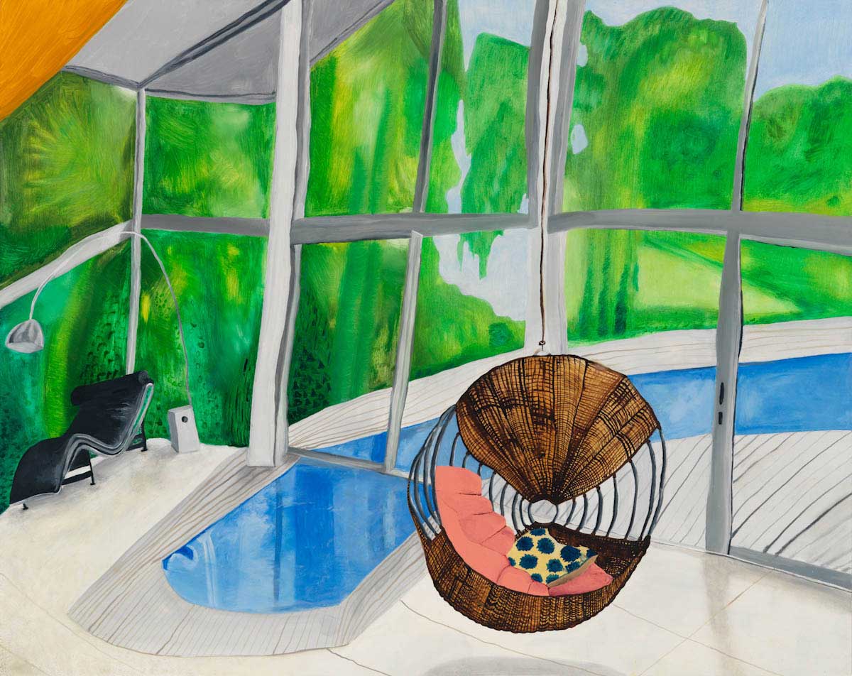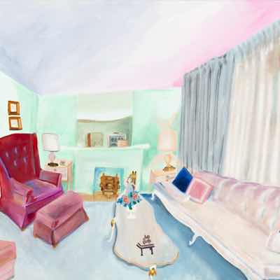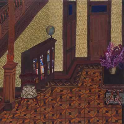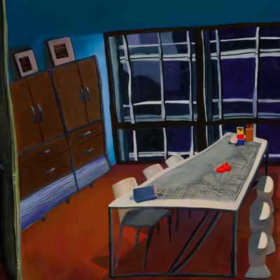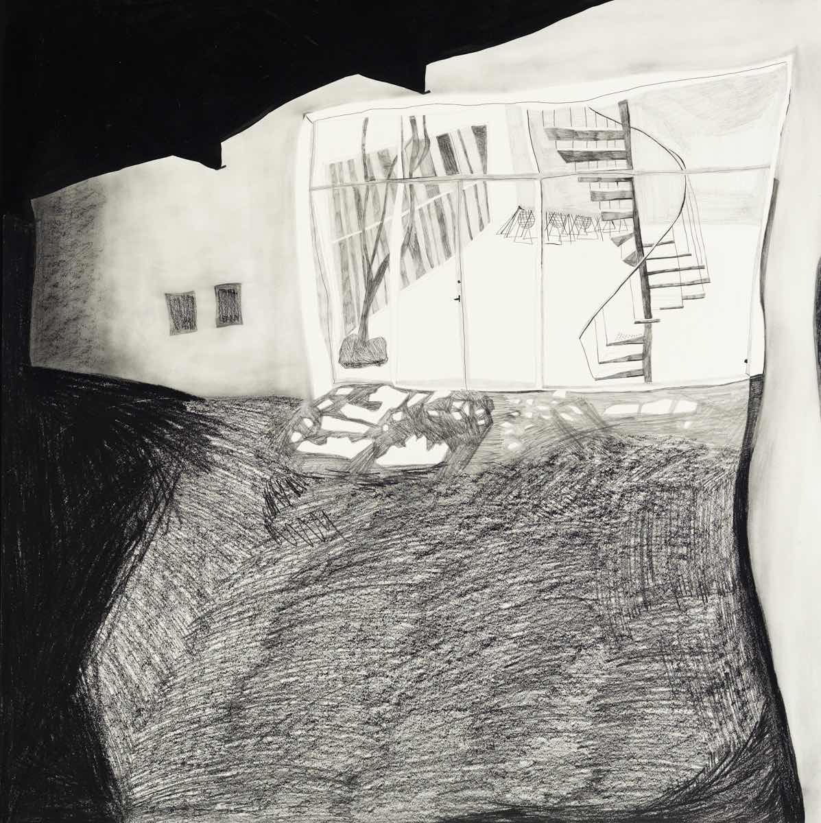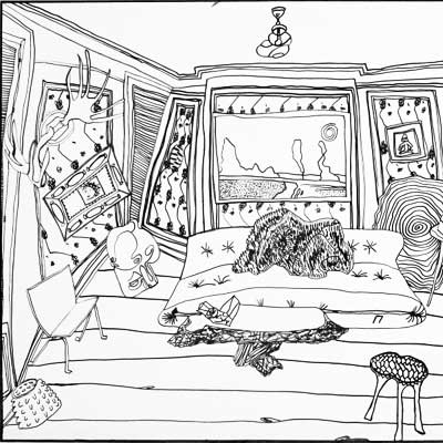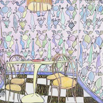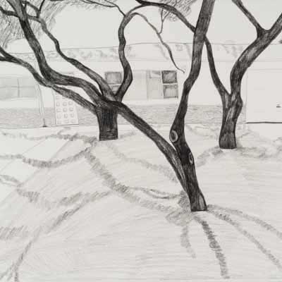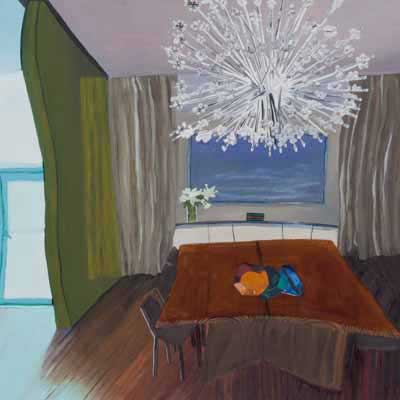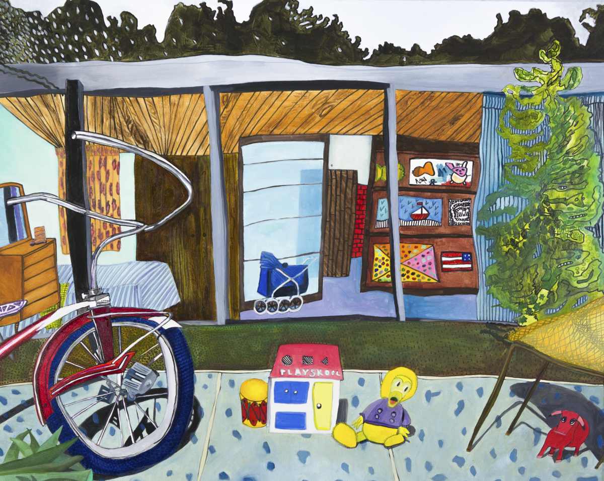 Gallery-Ox-Bow Centennial: Historic. In the East Wing of the gallery, CvsD spotlights new work by Chicago artist Gabrielle Garland. Garland’s intimate paintings focus on interior spaces – brilliantly colored, delightfully warped unpopulated domestic scenes. Her larger, slightly Hockneyesque graphite drawings feature landscape and architecture, with a dazzling range of marks from wild and expressionistic to fastidious and precise.