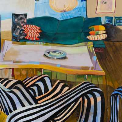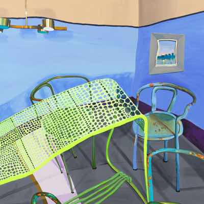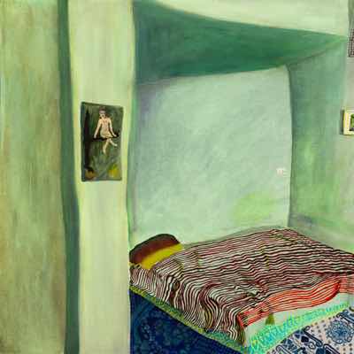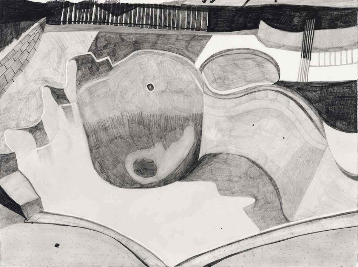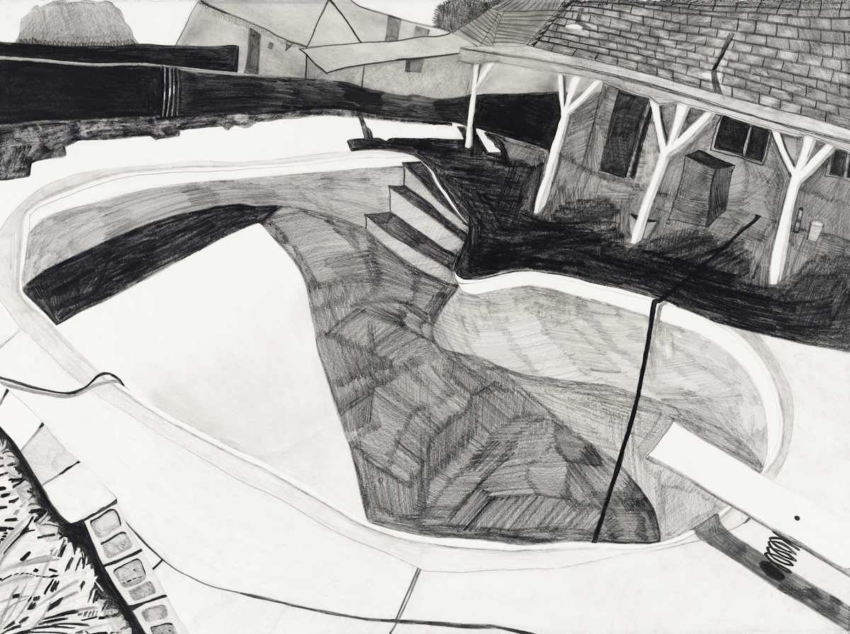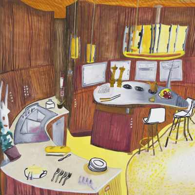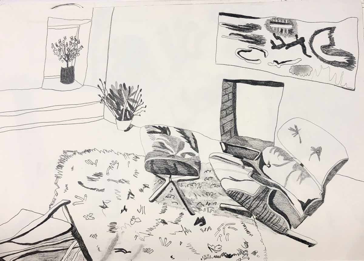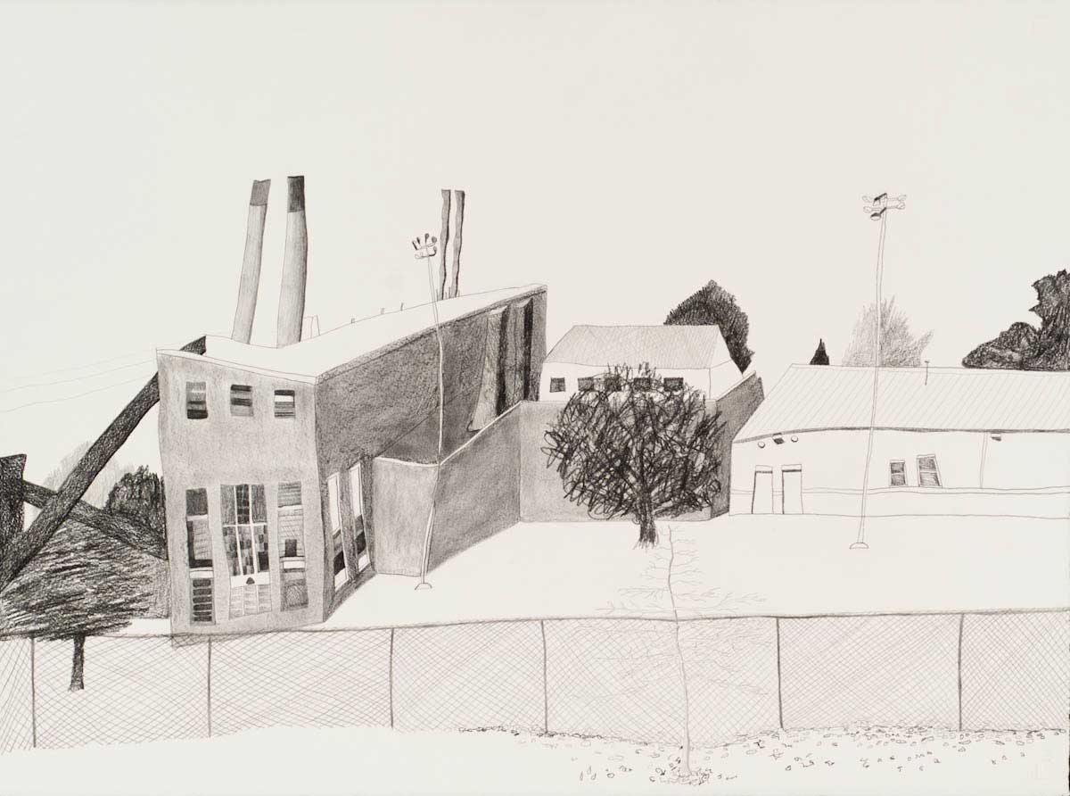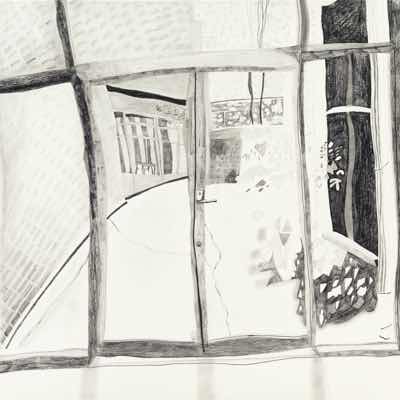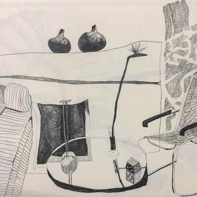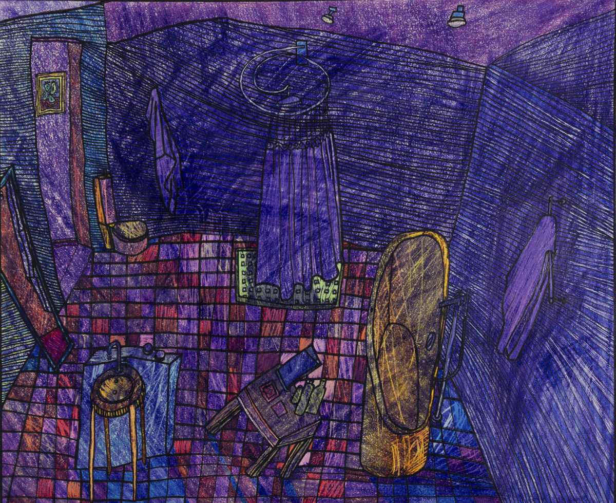Gallery-Ox-Bow Centennial: Historic. In the East Wing of the gallery, CvsD spotlights new work by Chicago artist Gabrielle Garland. Garland’s intimate paintings focus on interior spaces – brilliantly colored, delightfully warped unpopulated domestic scenes. Her larger, slightly Hockneyesque graphite drawings feature landscape and architecture, with a dazzling range of marks from wild and expressionistic to fastidious and precise.