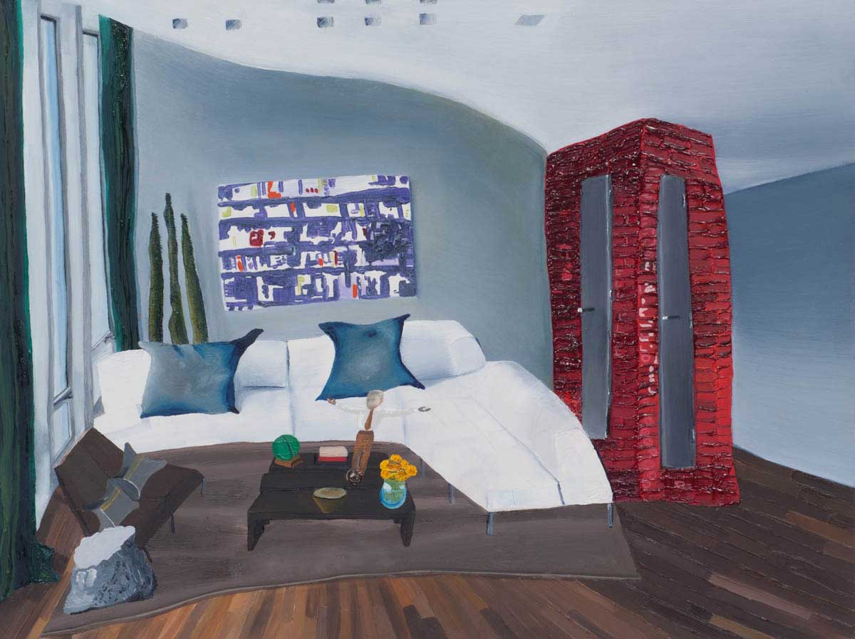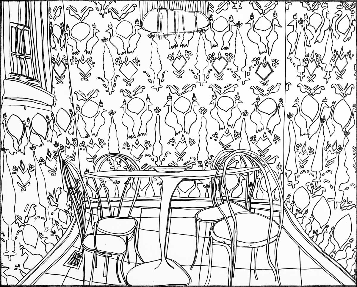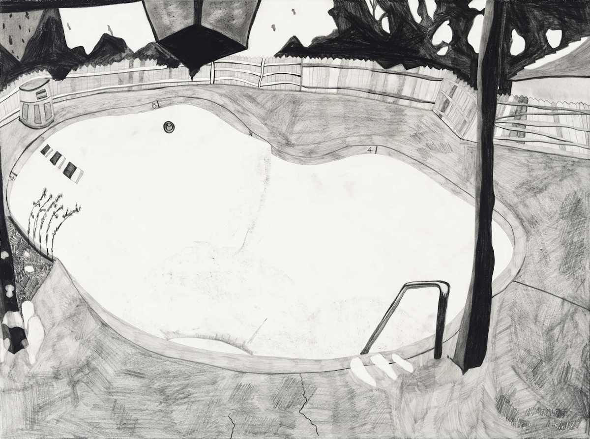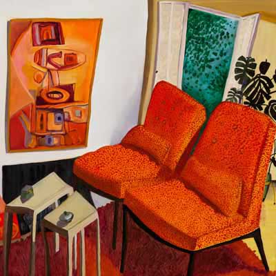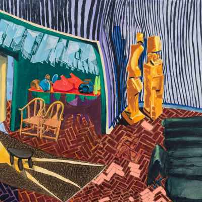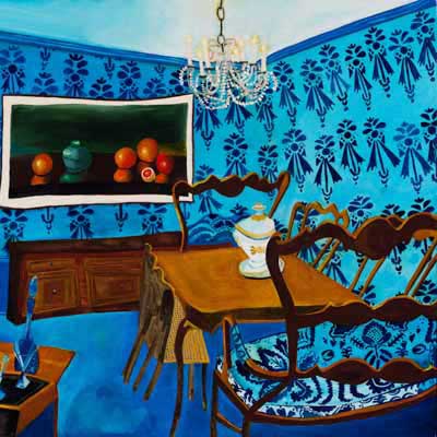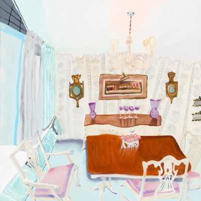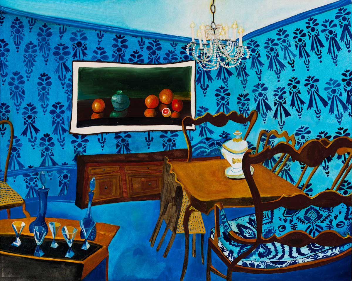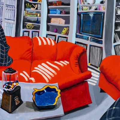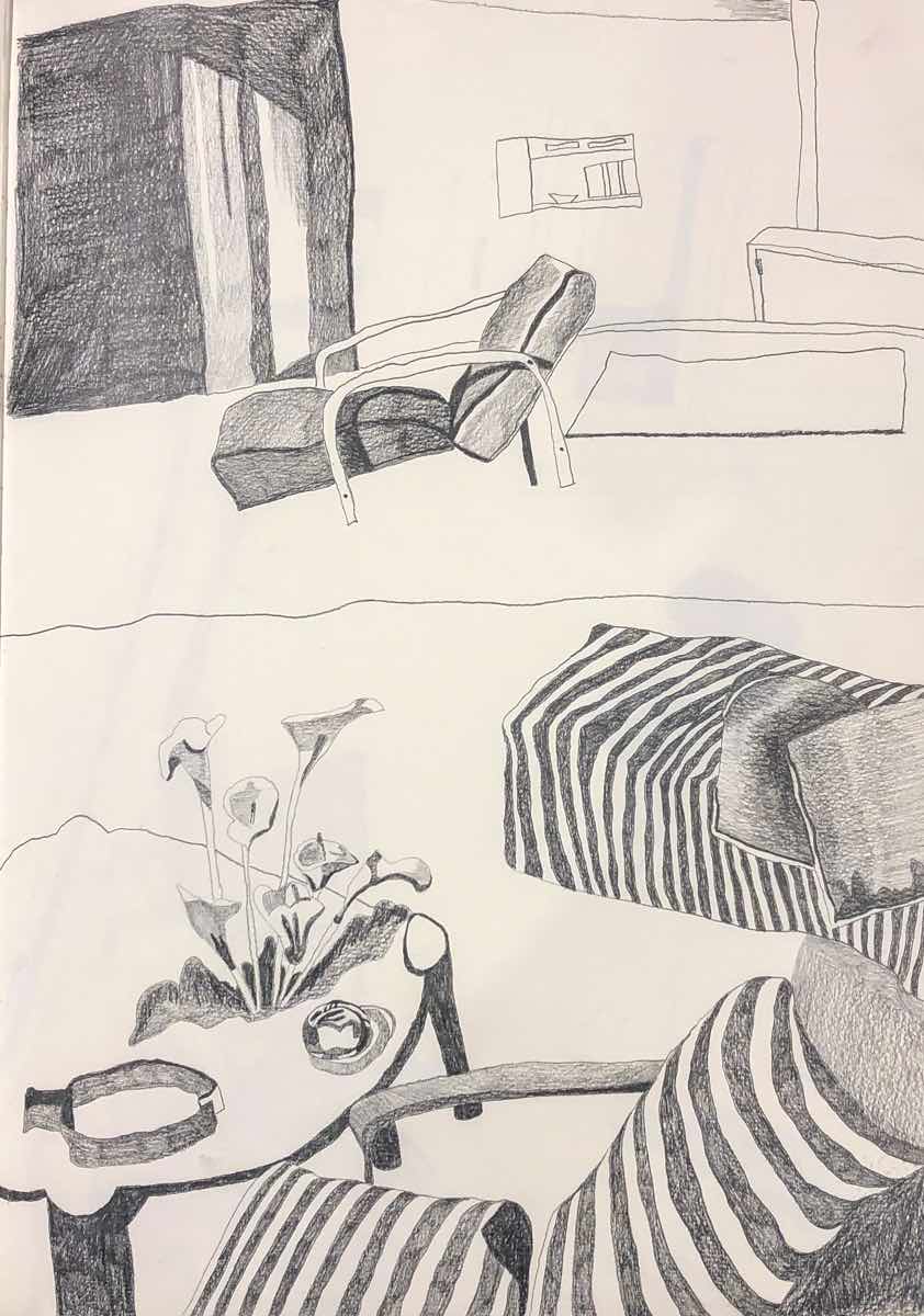 Gallery-Ox-Bow Centennial: Historic. In the East Wing of the gallery, CvsD spotlights new work by Chicago artist Gabrielle Garland. Garland’s intimate paintings focus on interior spaces – brilliantly colored, delightfully warped unpopulated domestic scenes. Her larger, slightly Hockneyesque graphite drawings feature landscape and architecture, with a dazzling range of marks from wild and expressionistic to fastidious and precise.