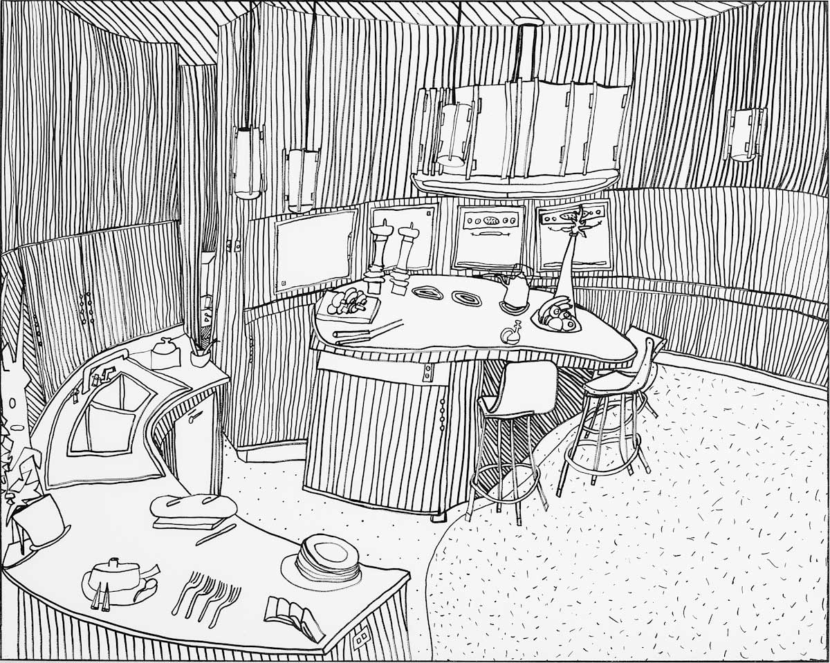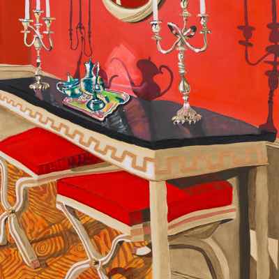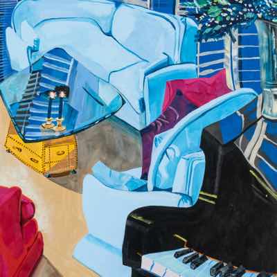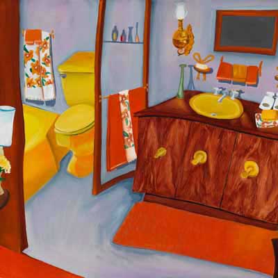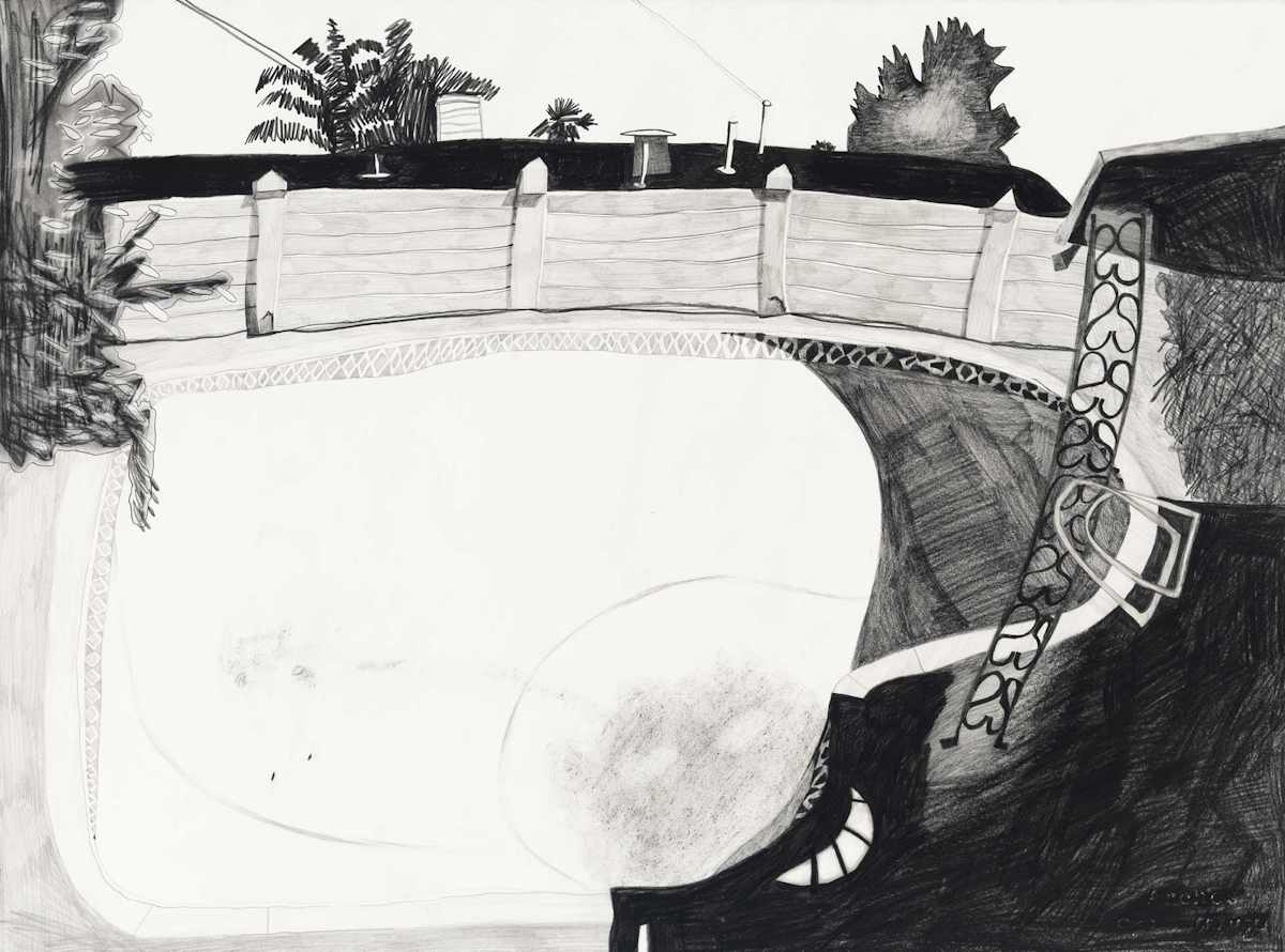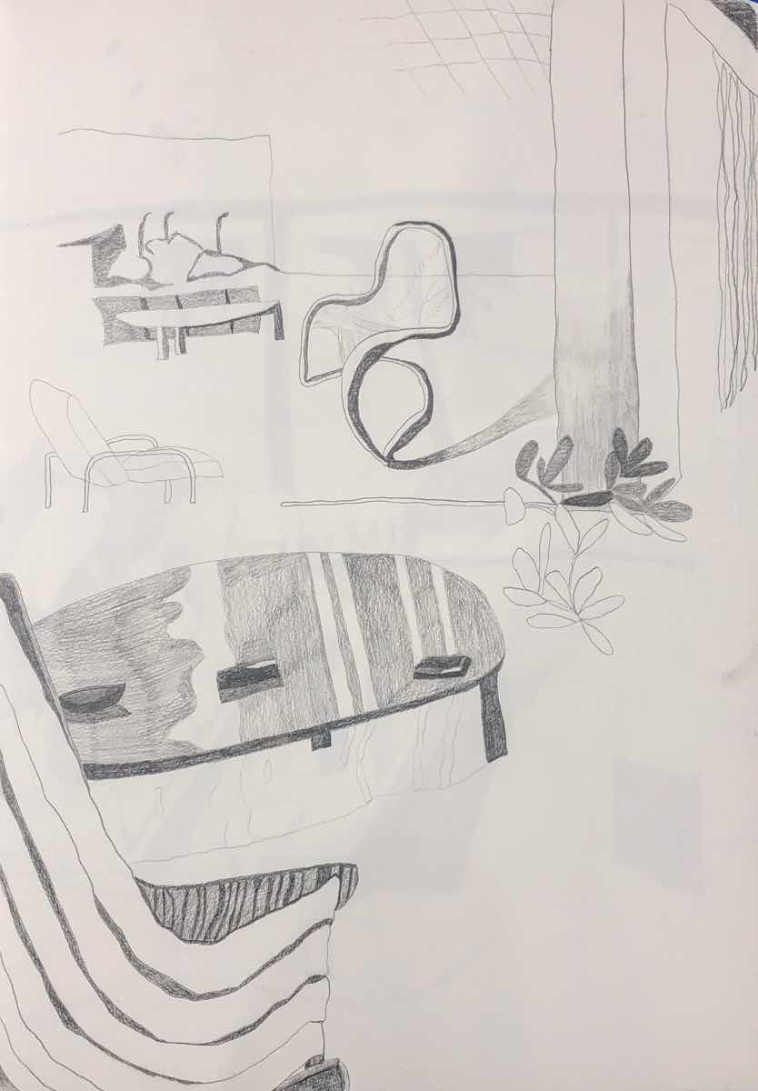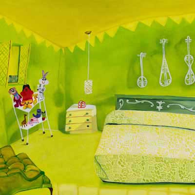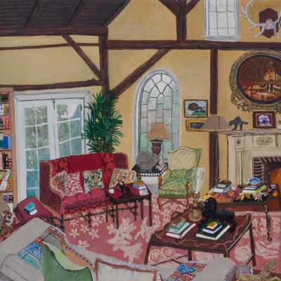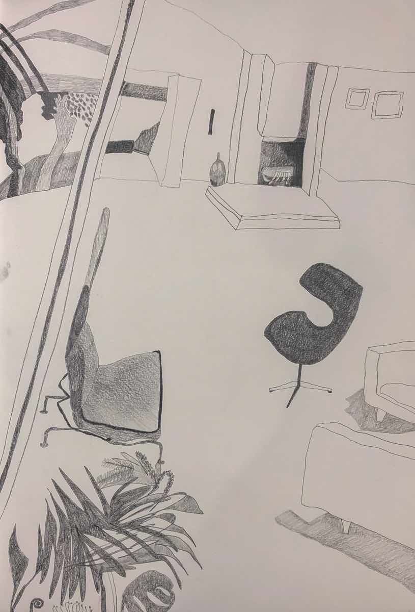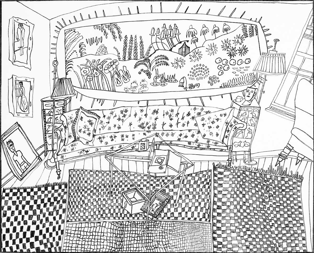 Gallery-Ox-Bow Centennial: Historic. In the East Wing of the gallery, CvsD spotlights new work by Chicago artist Gabrielle Garland. Garland’s intimate paintings focus on interior spaces – brilliantly colored, delightfully warped unpopulated domestic scenes. Her larger, slightly Hockneyesque graphite drawings feature landscape and architecture, with a dazzling range of marks from wild and expressionistic to fastidious and precise.