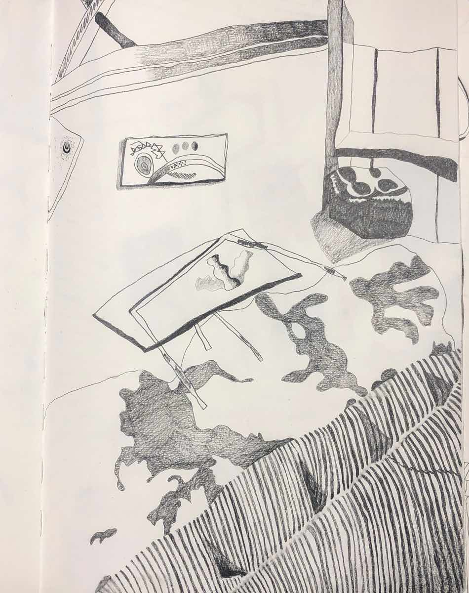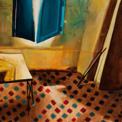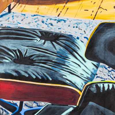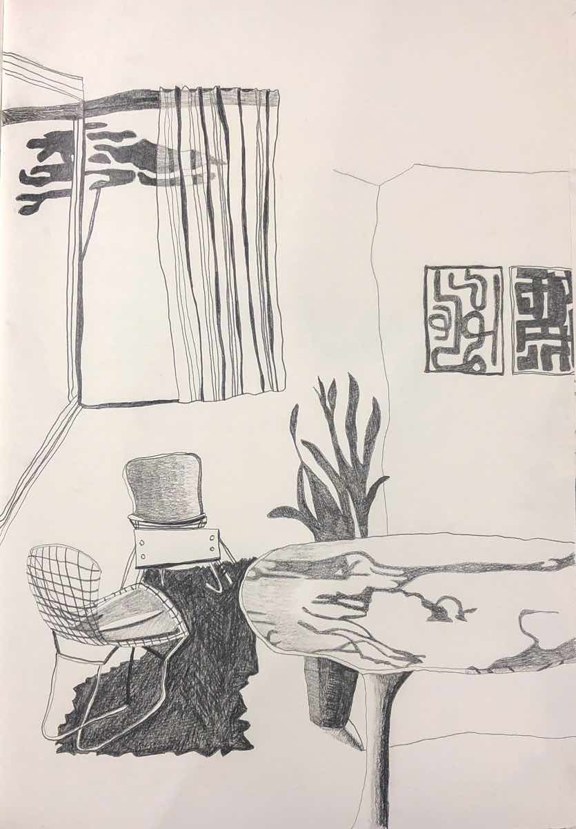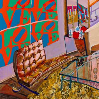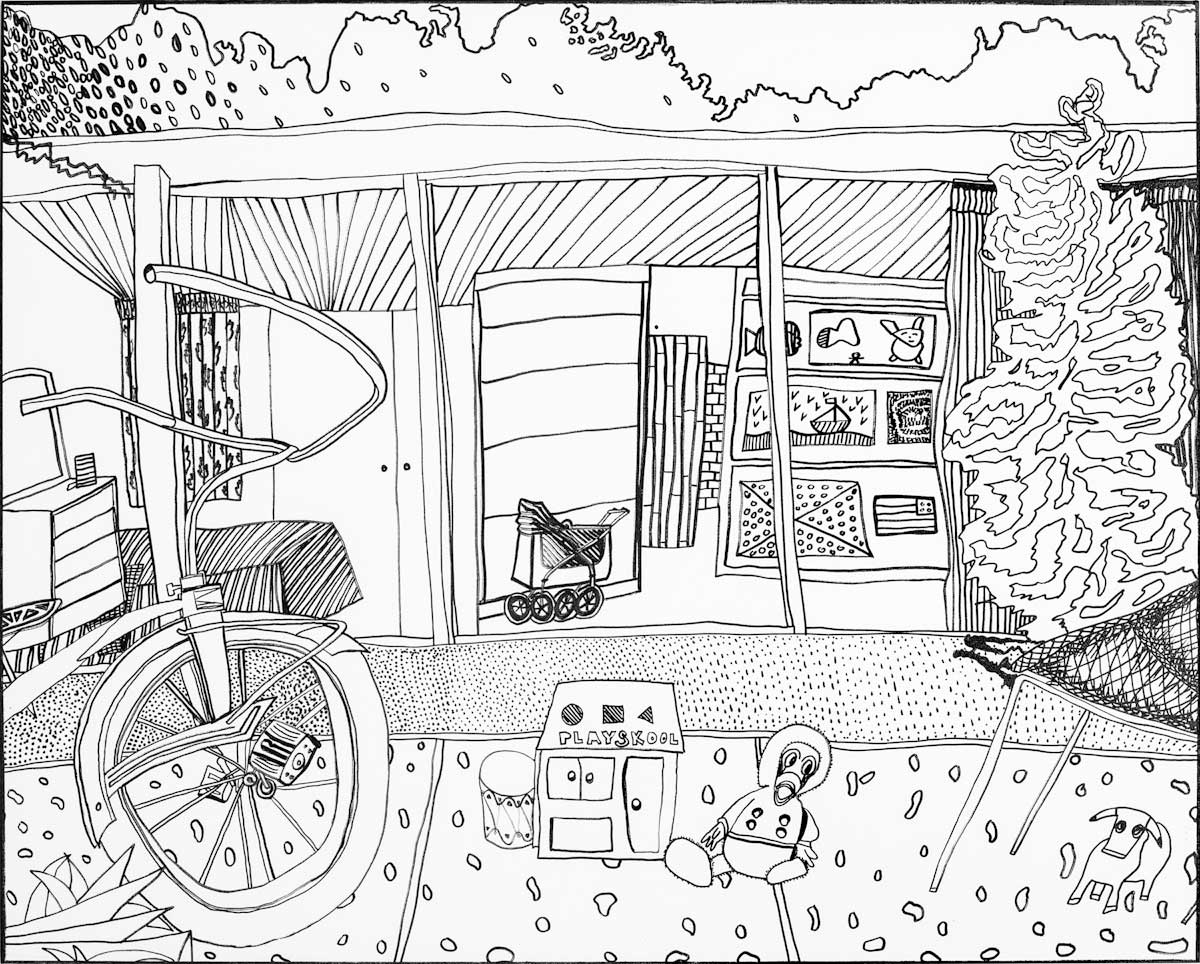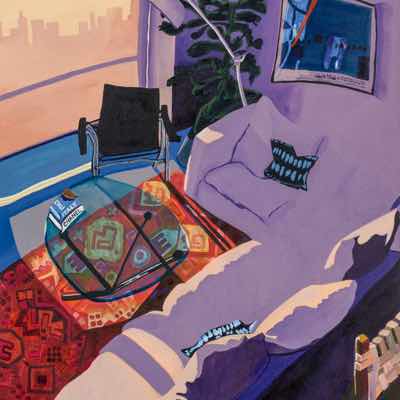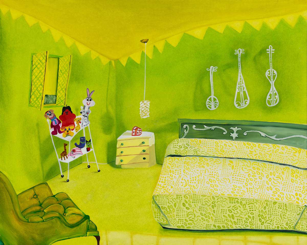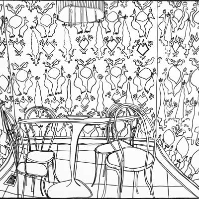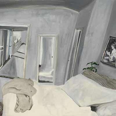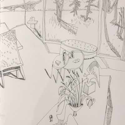 Gallery-Ox-Bow Centennial: Historic. In the East Wing of the gallery, CvsD spotlights new work by Chicago artist Gabrielle Garland. Garland’s intimate paintings focus on interior spaces – brilliantly colored, delightfully warped unpopulated domestic scenes. Her larger, slightly Hockneyesque graphite drawings feature landscape and architecture, with a dazzling range of marks from wild and expressionistic to fastidious and precise.