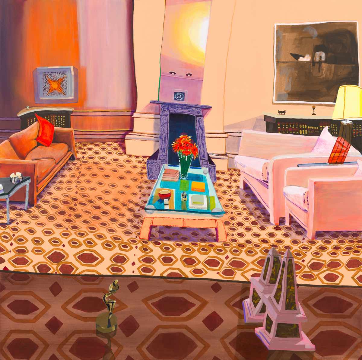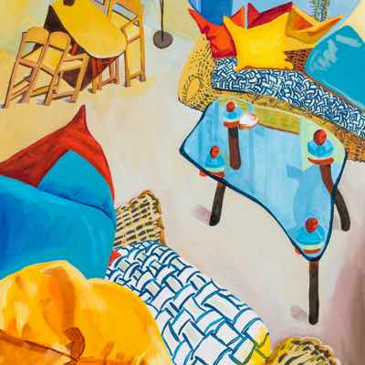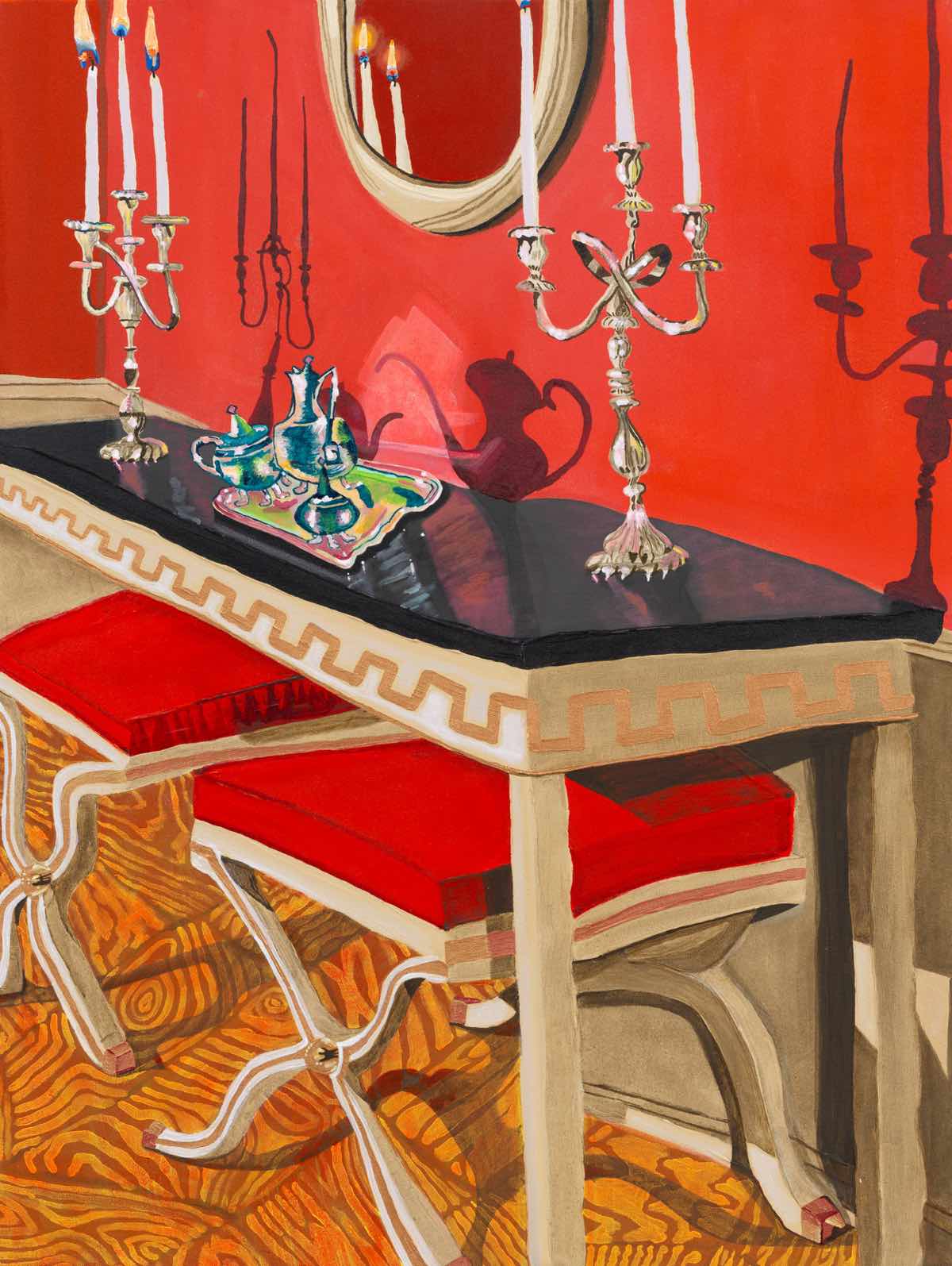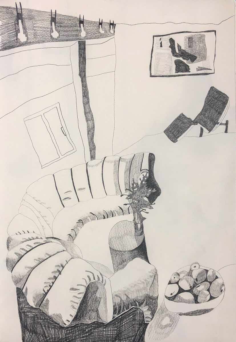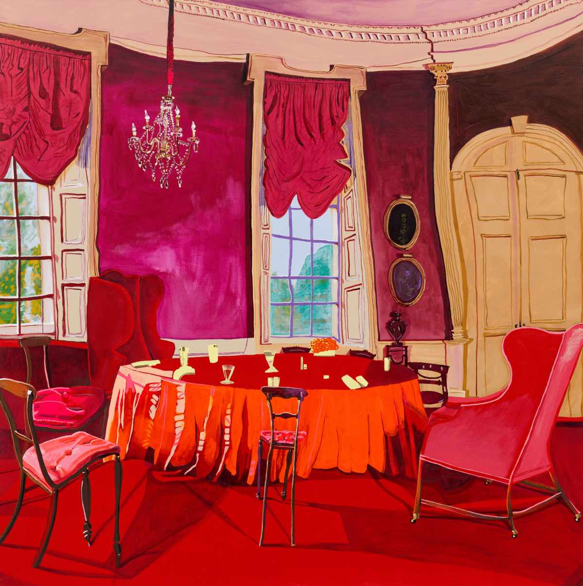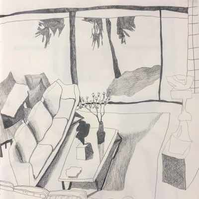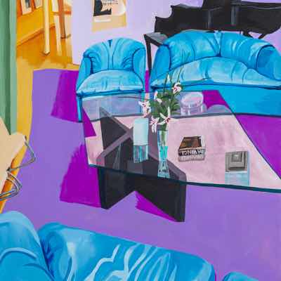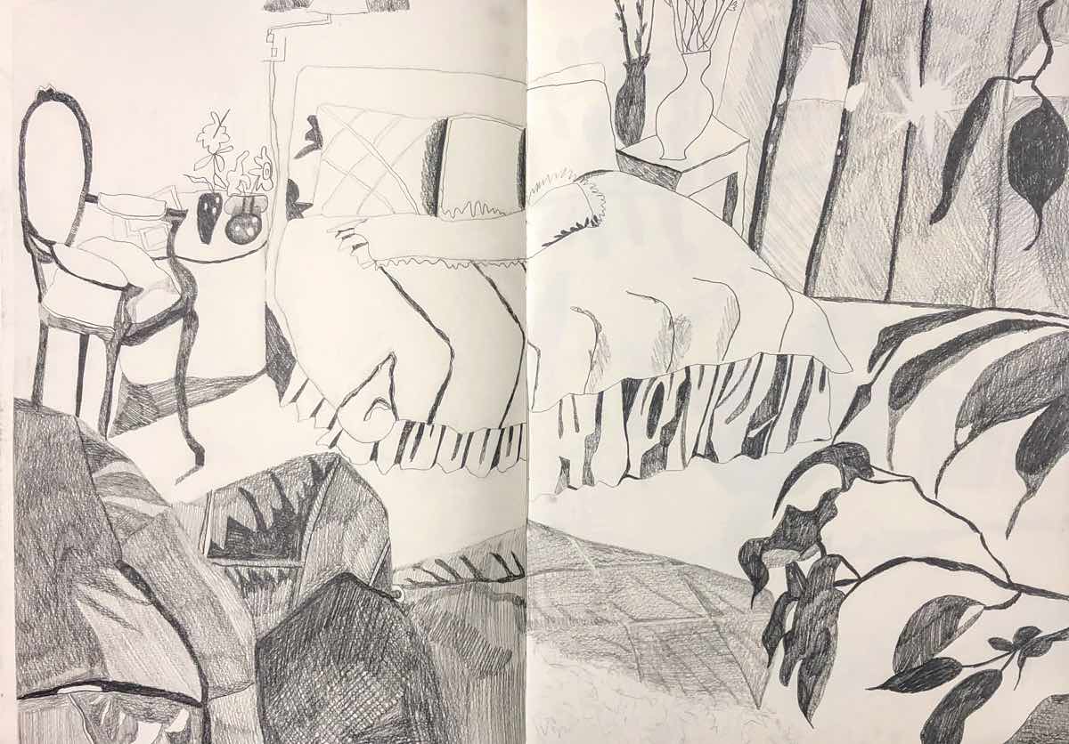 Gallery-Ox-Bow Centennial: Historic. In the East Wing of the gallery, CvsD spotlights new work by Chicago artist Gabrielle Garland. Garland’s intimate paintings focus on interior spaces – brilliantly colored, delightfully warped unpopulated domestic scenes. Her larger, slightly Hockneyesque graphite drawings feature landscape and architecture, with a dazzling range of marks from wild and expressionistic to fastidious and precise.