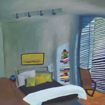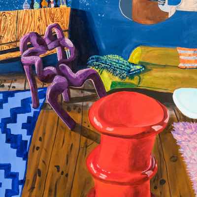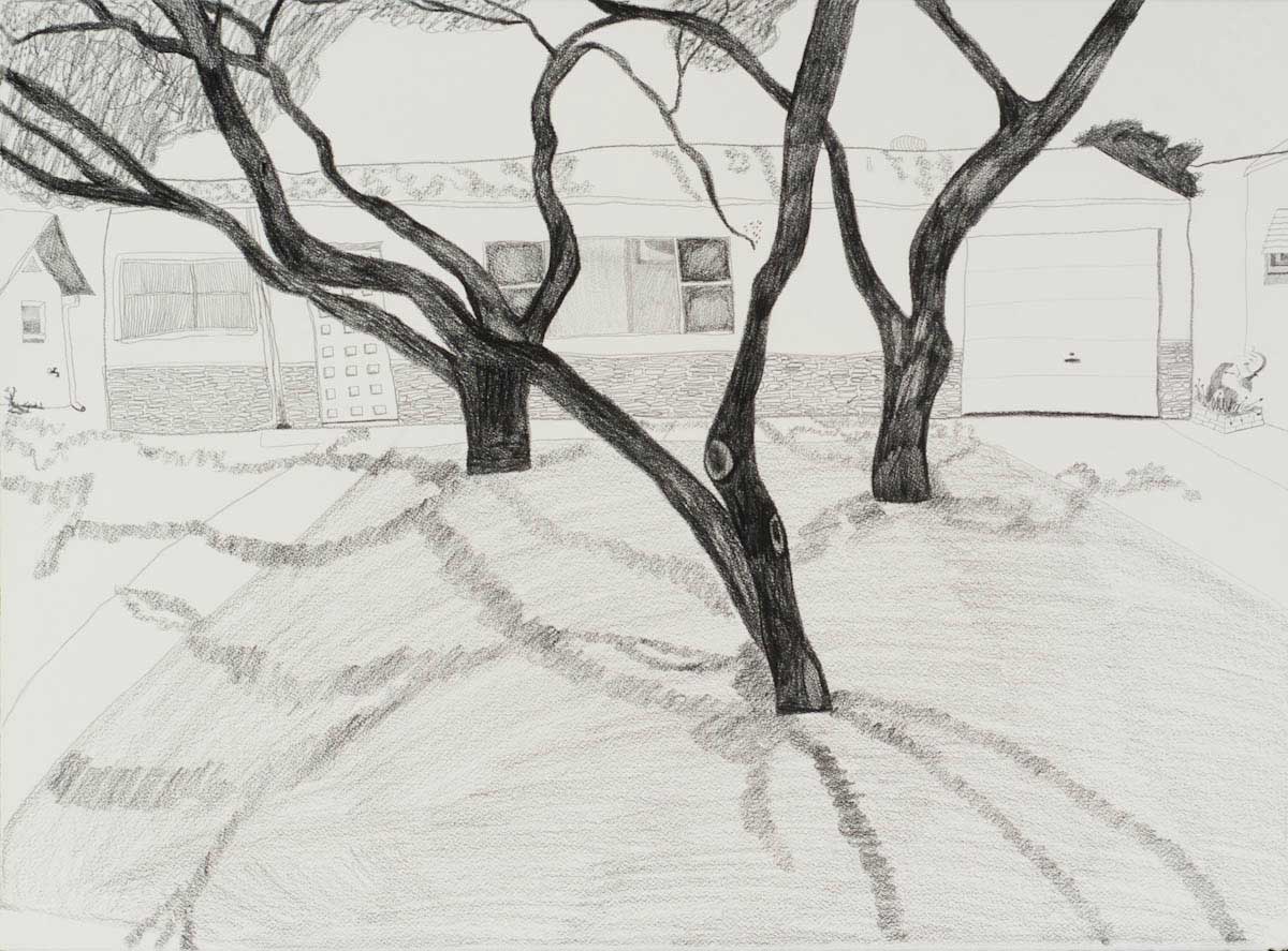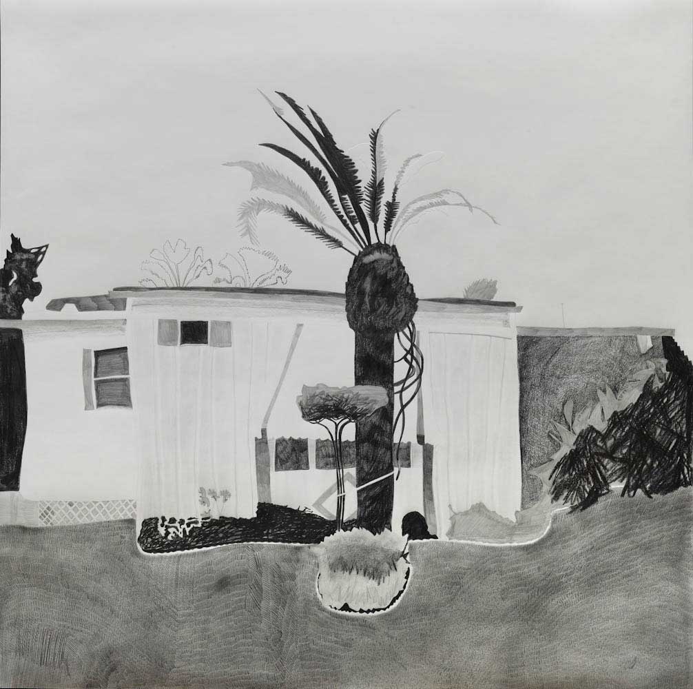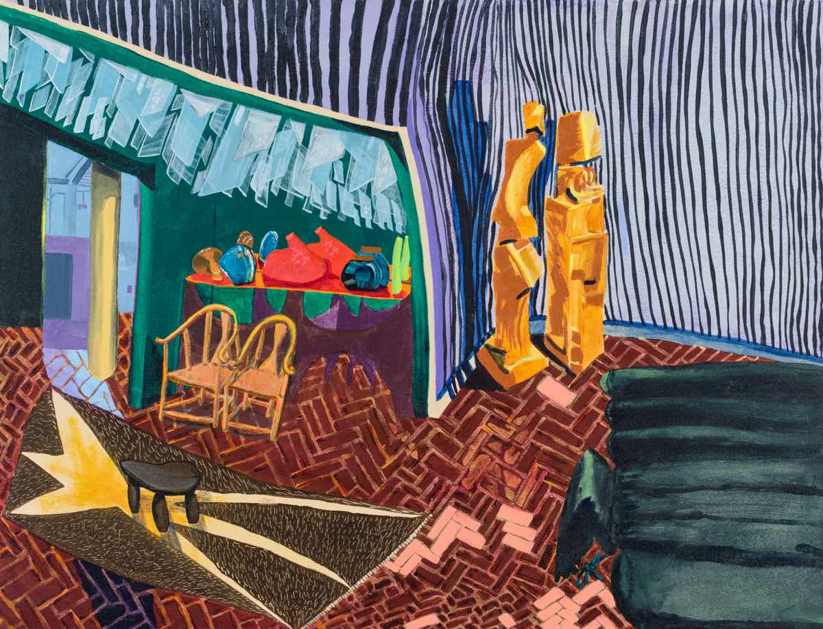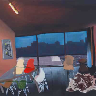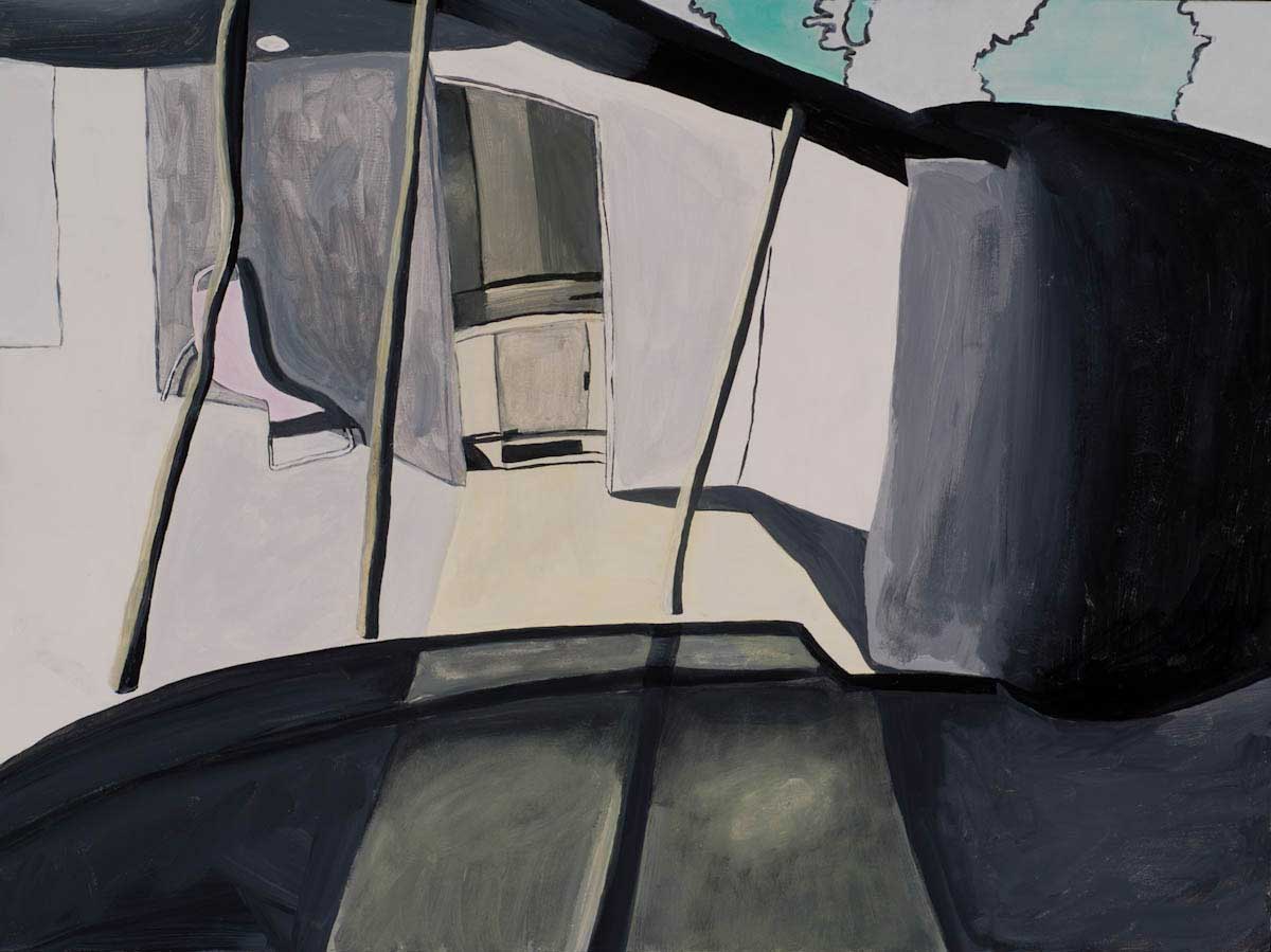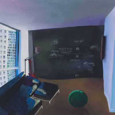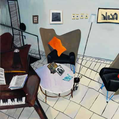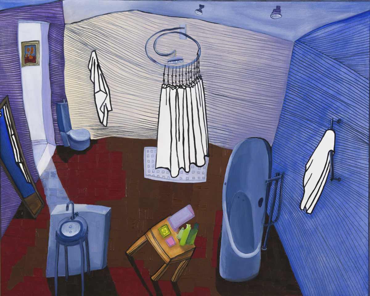 Gallery-Ox-Bow Centennial: Historic. In the East Wing of the gallery, CvsD spotlights new work by Chicago artist Gabrielle Garland. Garland’s intimate paintings focus on interior spaces – brilliantly colored, delightfully warped unpopulated domestic scenes. Her larger, slightly Hockneyesque graphite drawings feature landscape and architecture, with a dazzling range of marks from wild and expressionistic to fastidious and precise.