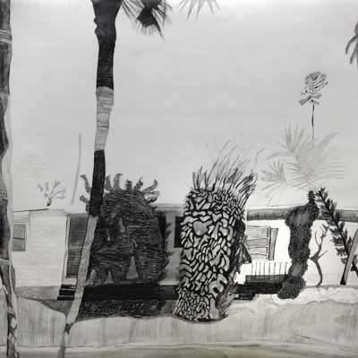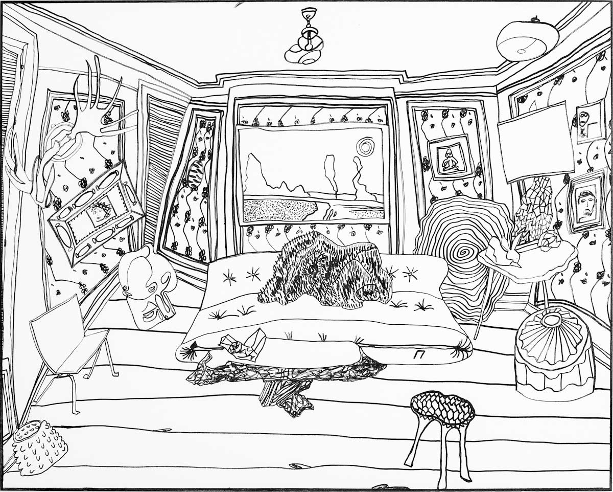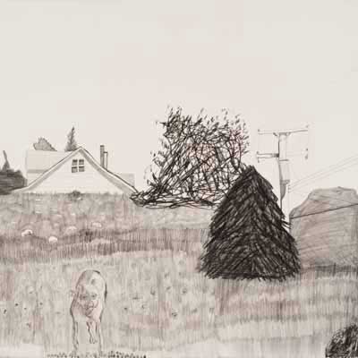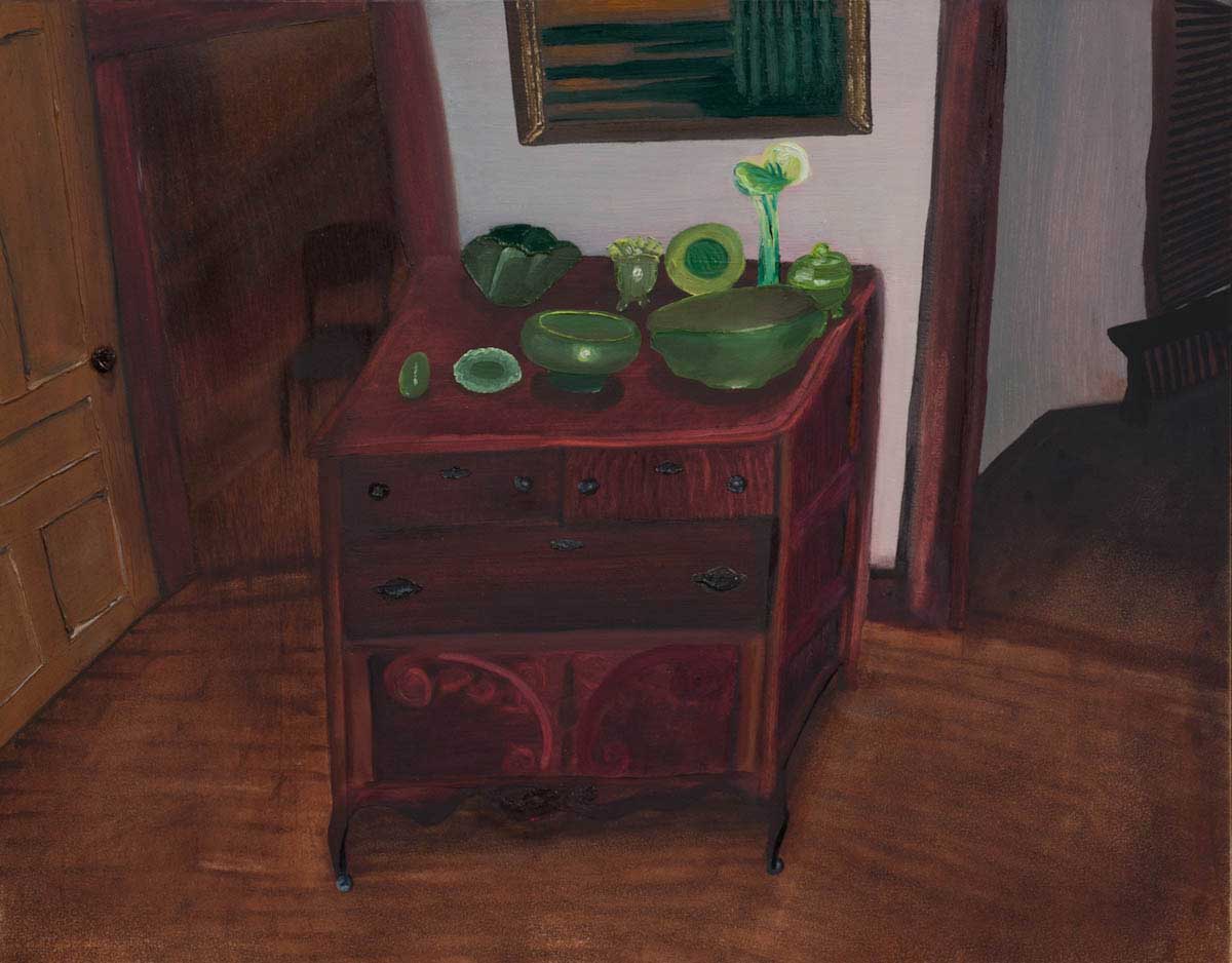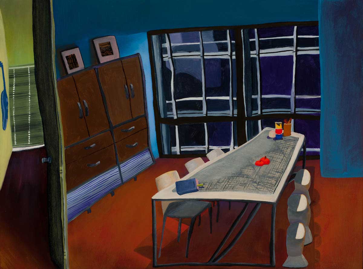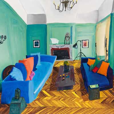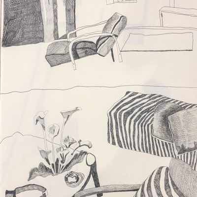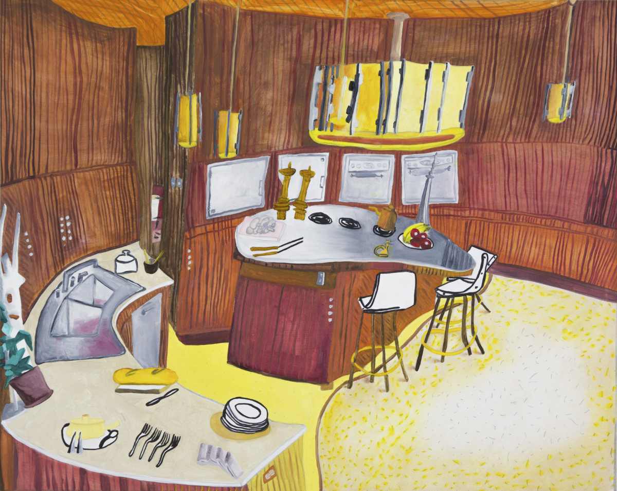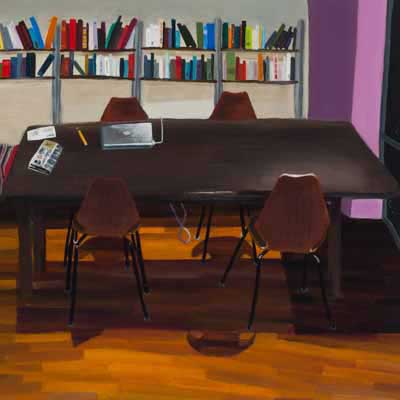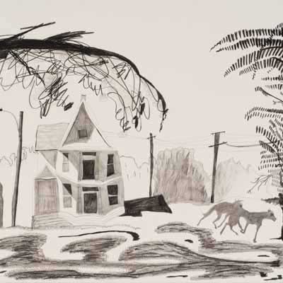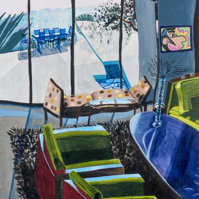 Gallery-Ox-Bow Centennial: Historic. In the East Wing of the gallery, CvsD spotlights new work by Chicago artist Gabrielle Garland. Garland’s intimate paintings focus on interior spaces – brilliantly colored, delightfully warped unpopulated domestic scenes. Her larger, slightly Hockneyesque graphite drawings feature landscape and architecture, with a dazzling range of marks from wild and expressionistic to fastidious and precise.