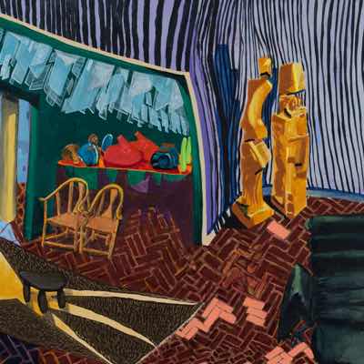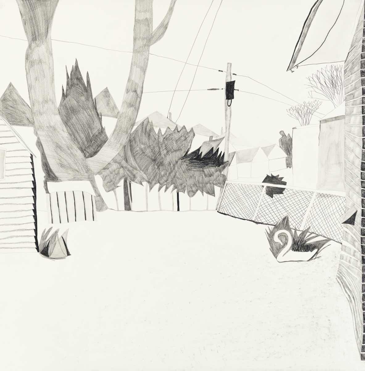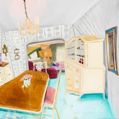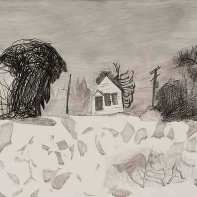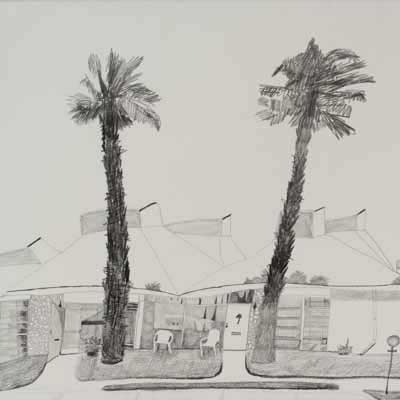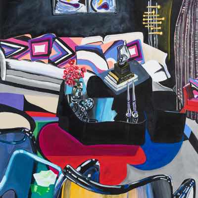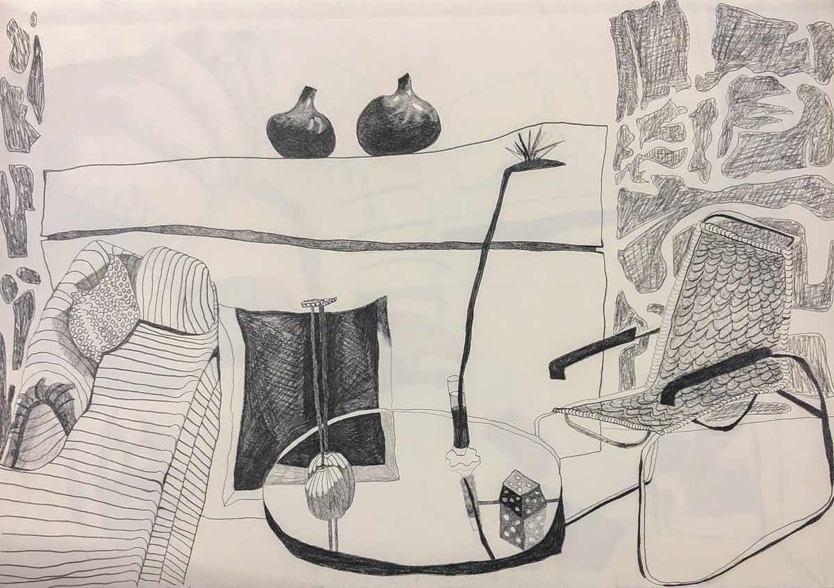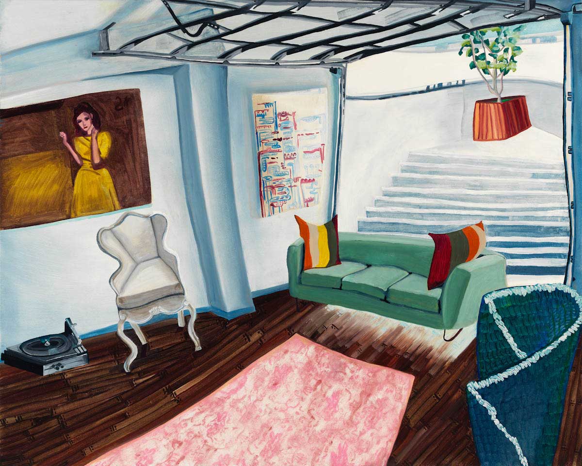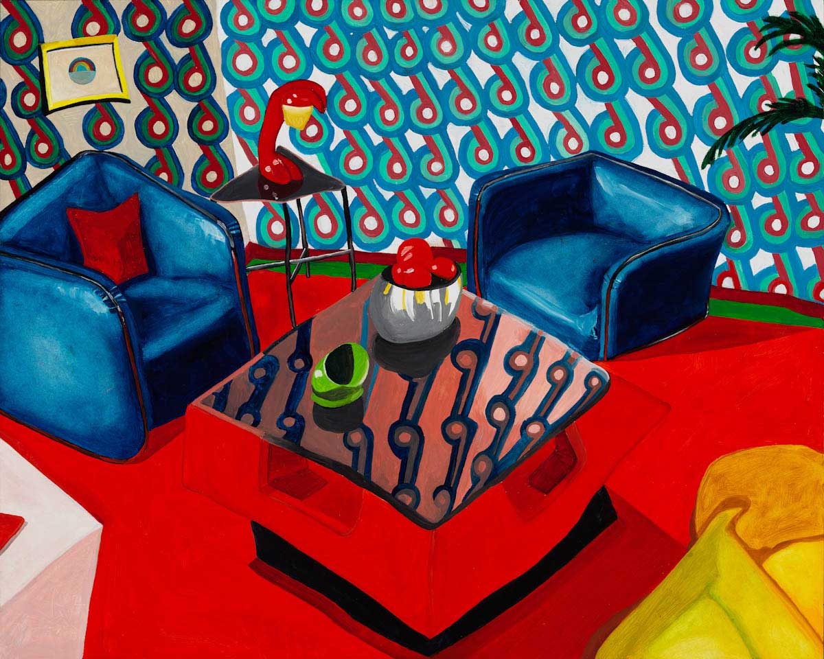 Gallery-Ox-Bow Centennial: Historic. In the East Wing of the gallery, CvsD spotlights new work by Chicago artist Gabrielle Garland. Garland’s intimate paintings focus on interior spaces – brilliantly colored, delightfully warped unpopulated domestic scenes. Her larger, slightly Hockneyesque graphite drawings feature landscape and architecture, with a dazzling range of marks from wild and expressionistic to fastidious and precise.