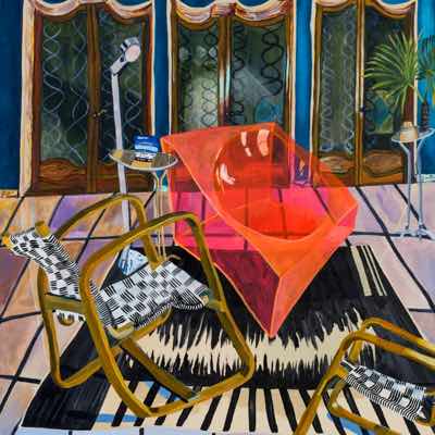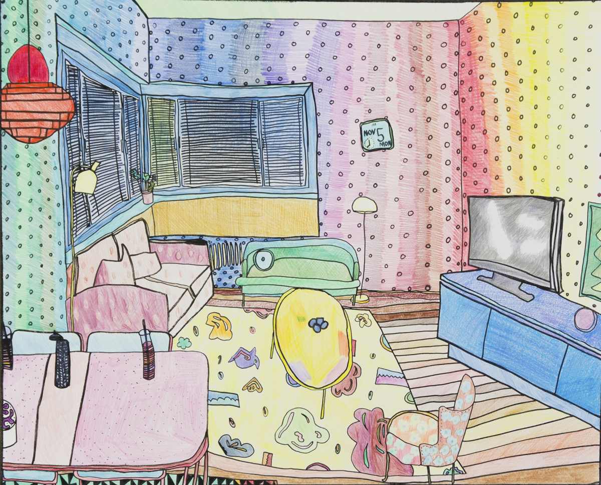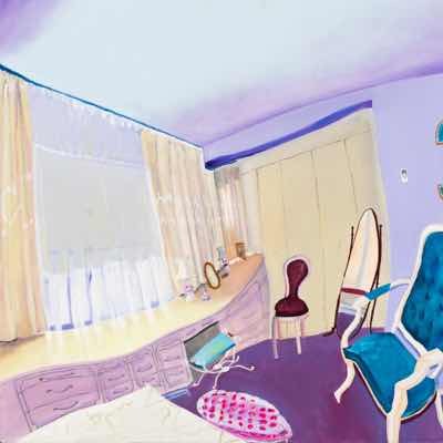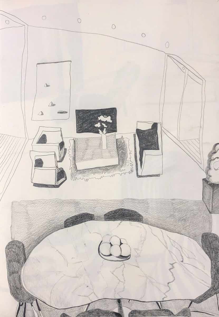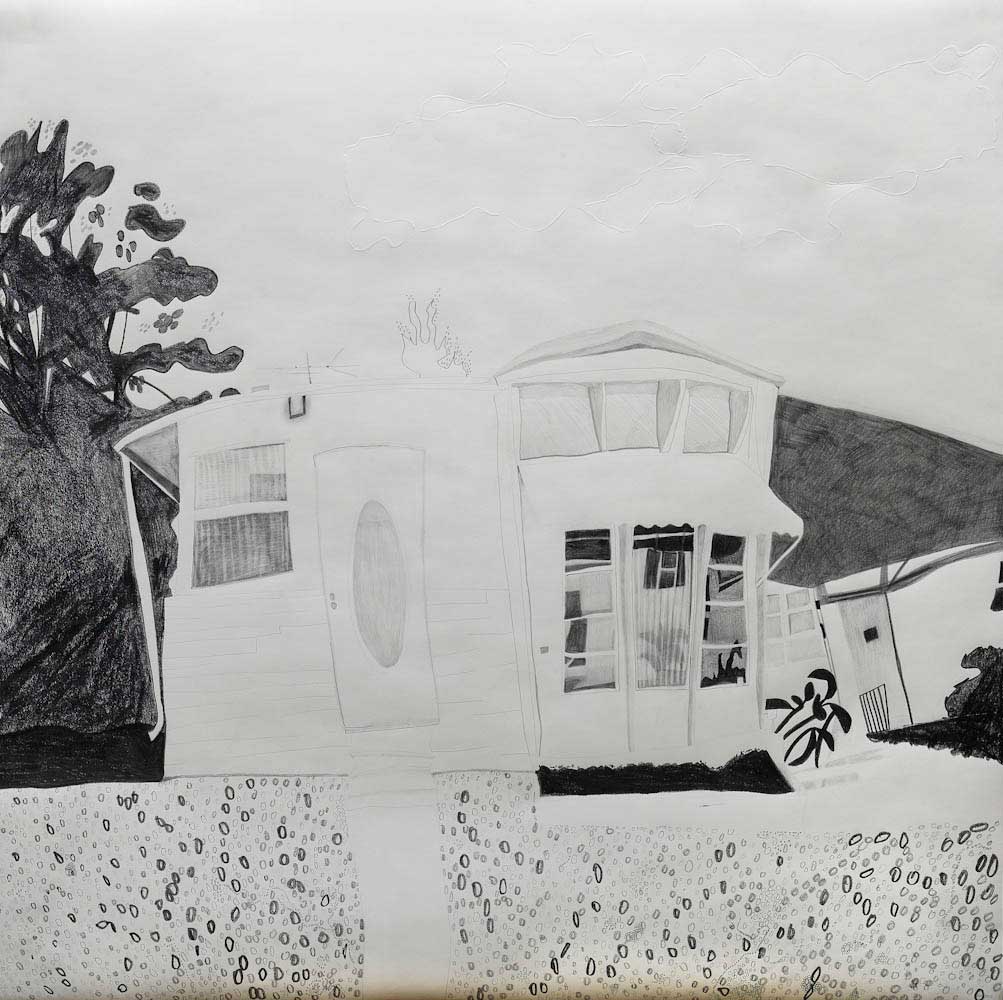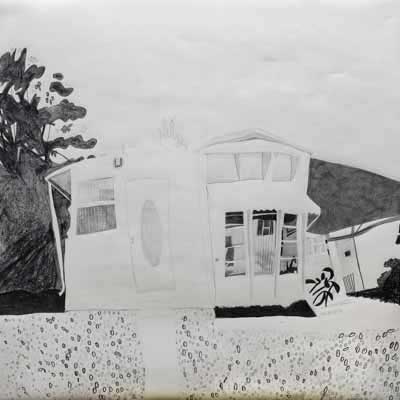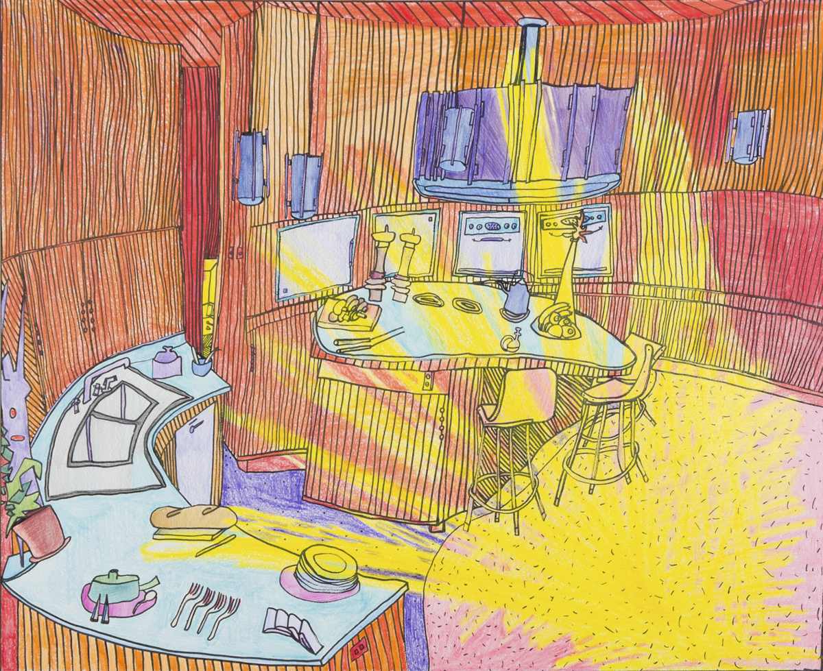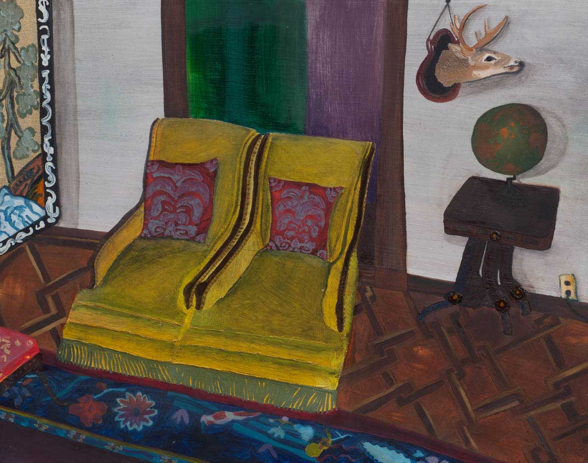 Gallery-Ox-Bow Centennial: Historic. In the East Wing of the gallery, CvsD spotlights new work by Chicago artist Gabrielle Garland. Garland’s intimate paintings focus on interior spaces – brilliantly colored, delightfully warped unpopulated domestic scenes. Her larger, slightly Hockneyesque graphite drawings feature landscape and architecture, with a dazzling range of marks from wild and expressionistic to fastidious and precise.