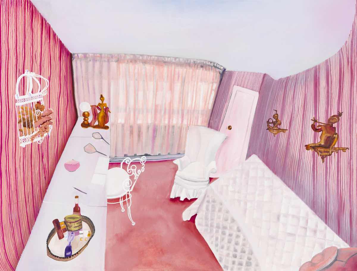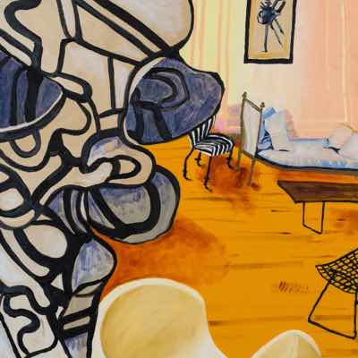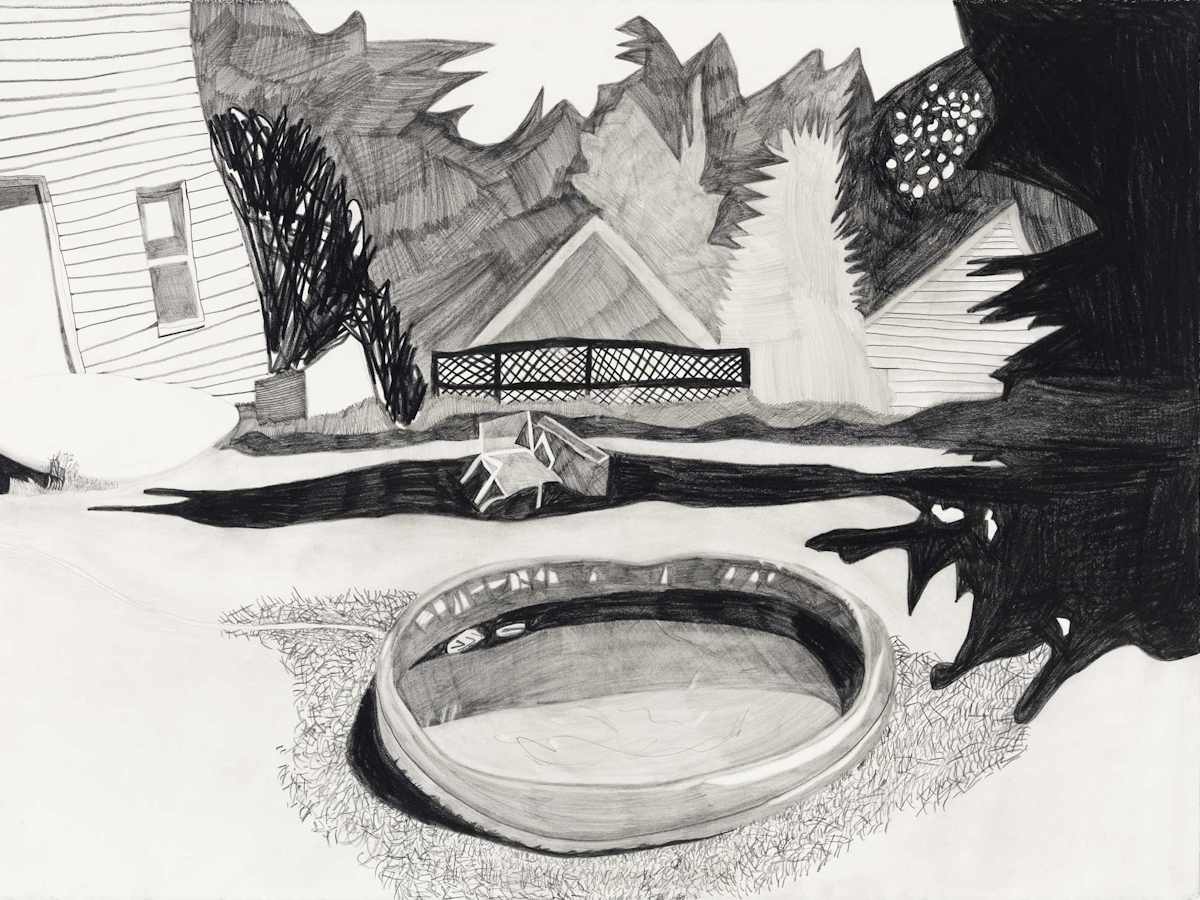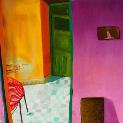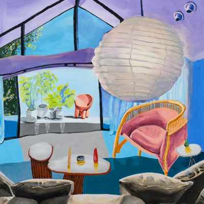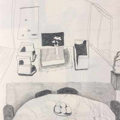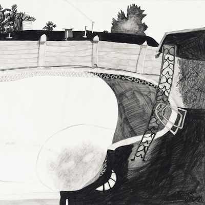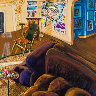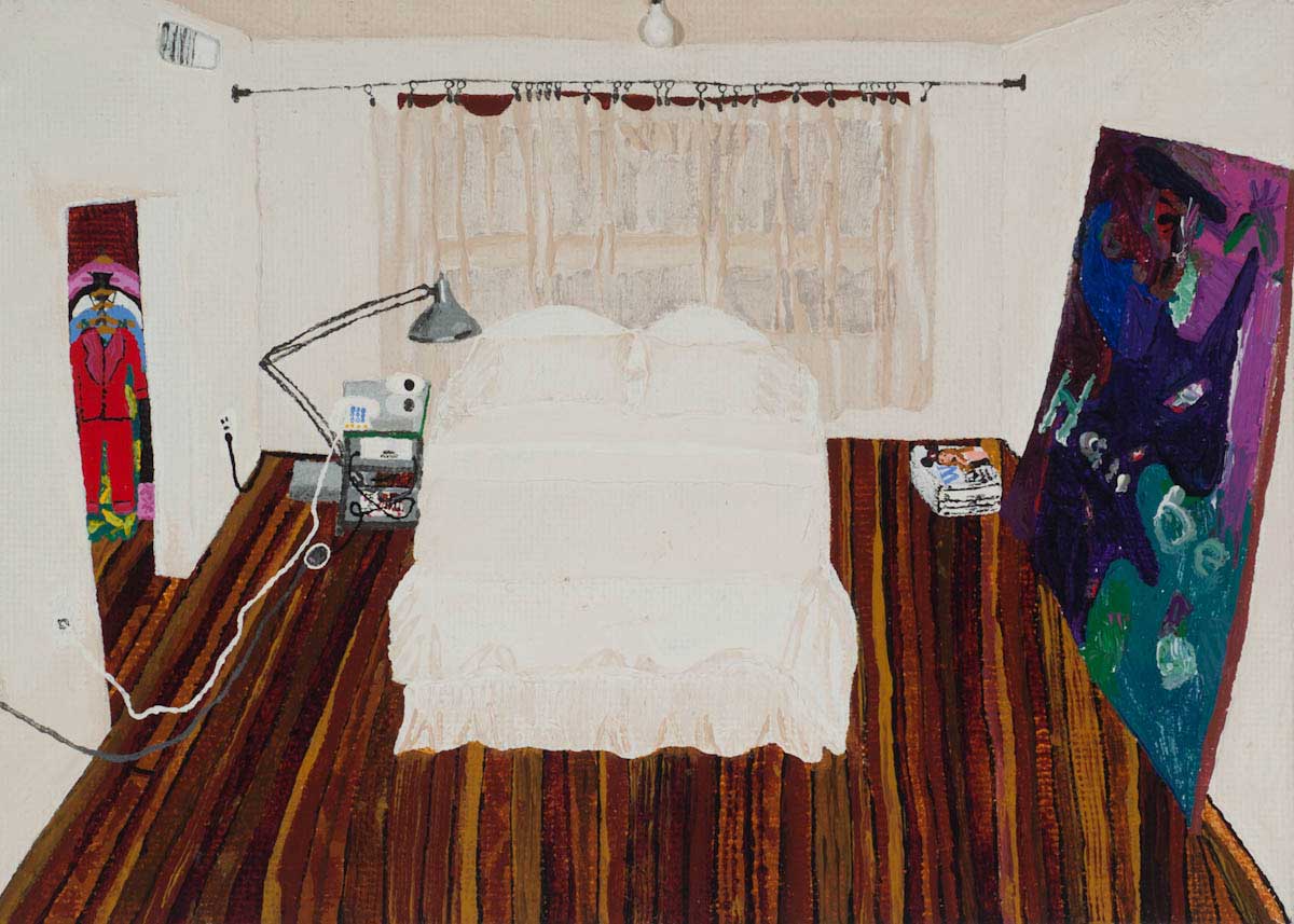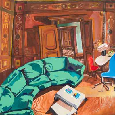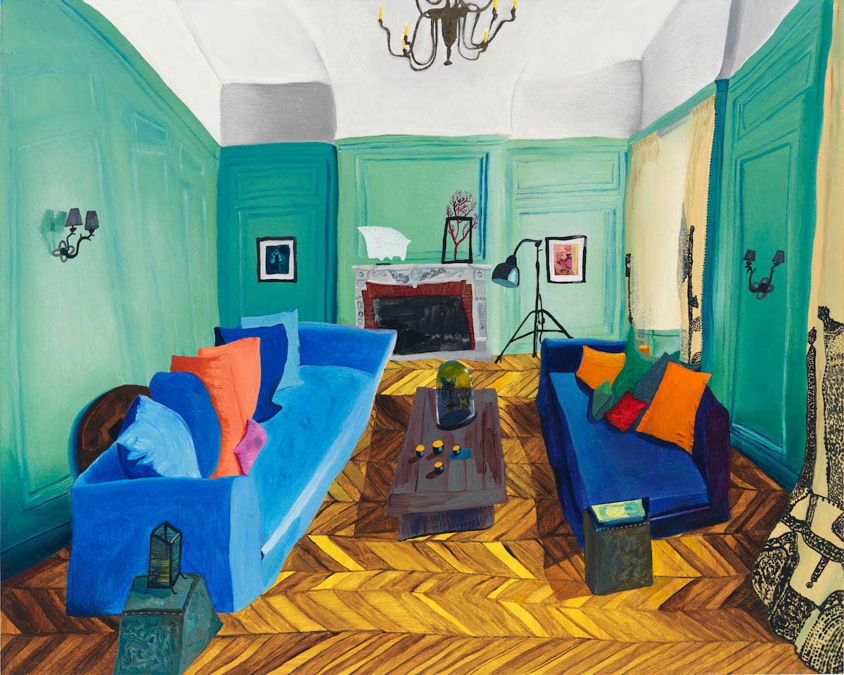 Gallery-Ox-Bow Centennial: Historic. In the East Wing of the gallery, CvsD spotlights new work by Chicago artist Gabrielle Garland. Garland’s intimate paintings focus on interior spaces – brilliantly colored, delightfully warped unpopulated domestic scenes. Her larger, slightly Hockneyesque graphite drawings feature landscape and architecture, with a dazzling range of marks from wild and expressionistic to fastidious and precise.