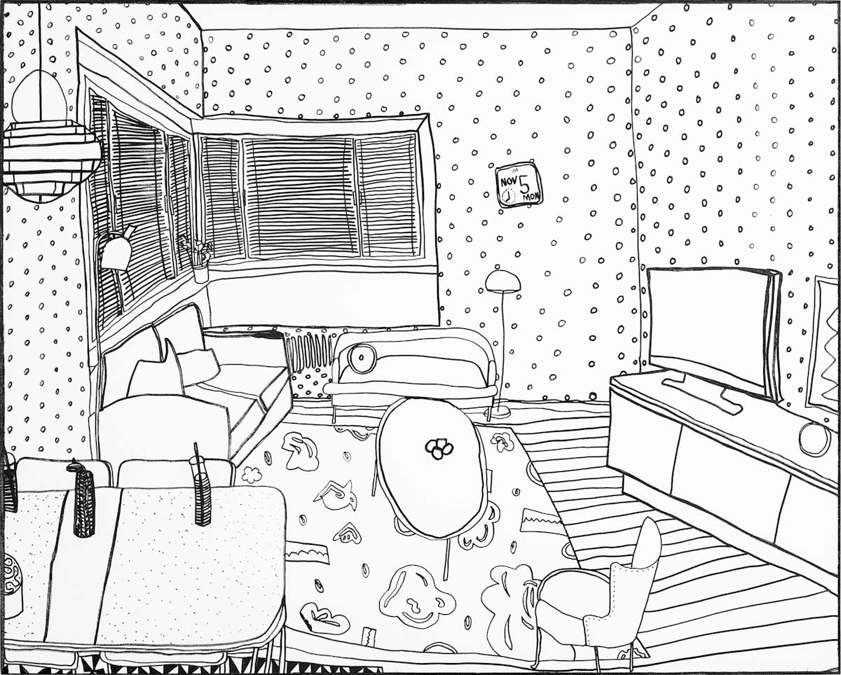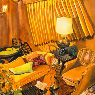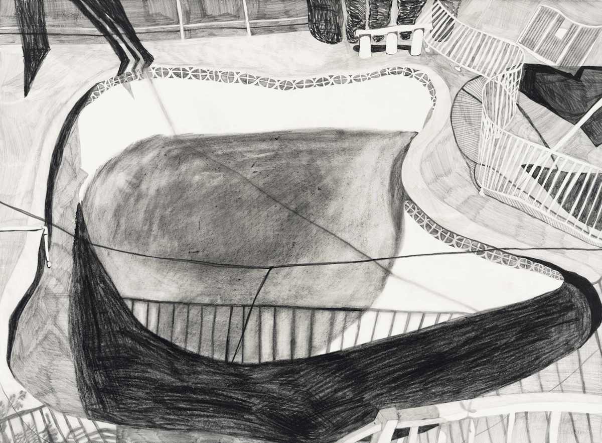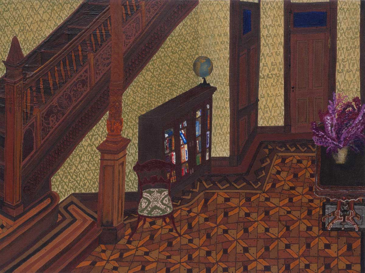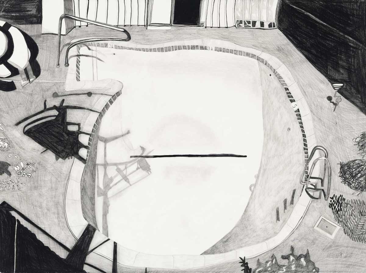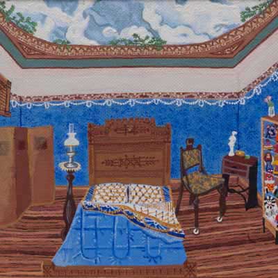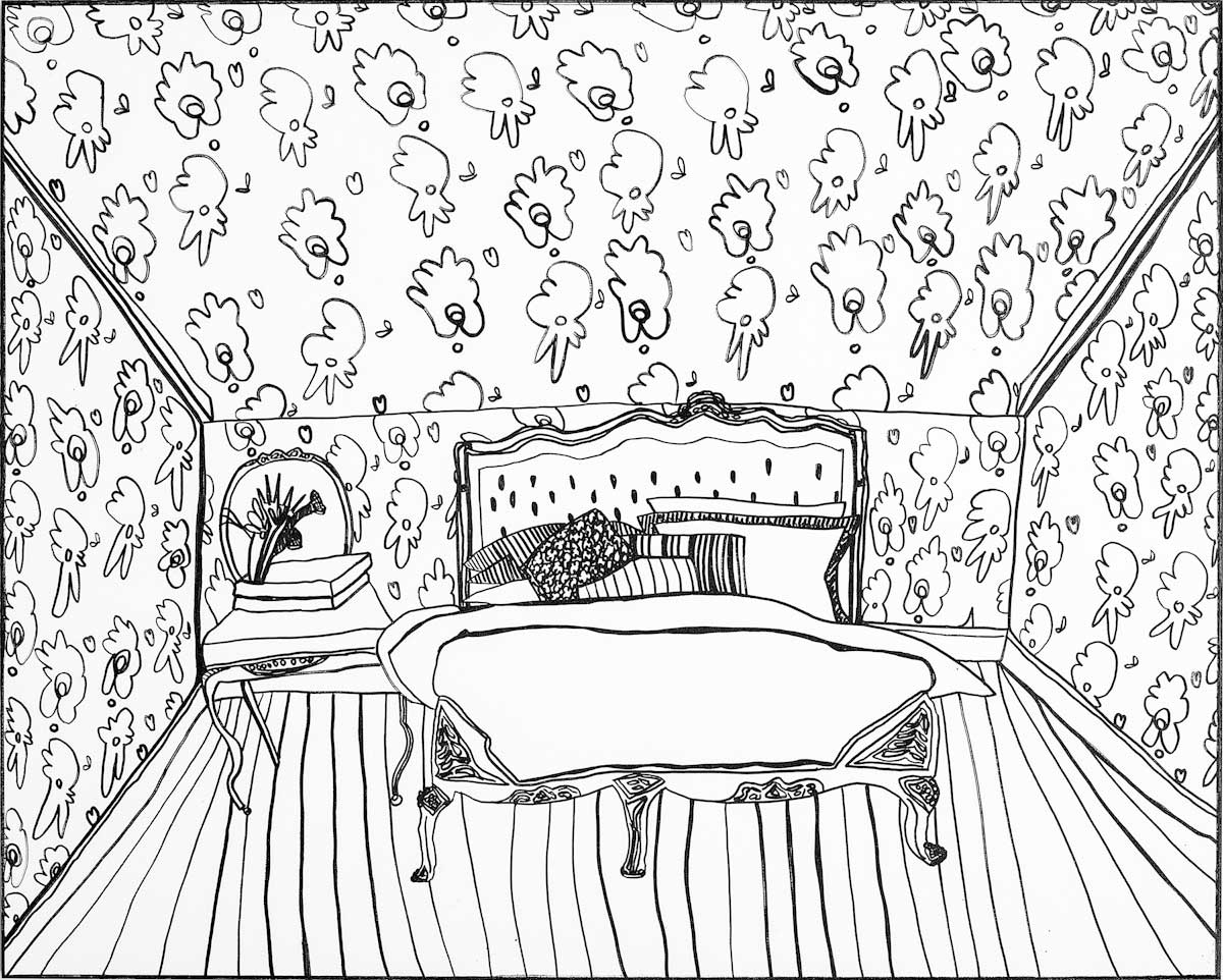 Gallery-Ox-Bow Centennial: Historic. In the East Wing of the gallery, CvsD spotlights new work by Chicago artist Gabrielle Garland. Garland’s intimate paintings focus on interior spaces – brilliantly colored, delightfully warped unpopulated domestic scenes. Her larger, slightly Hockneyesque graphite drawings feature landscape and architecture, with a dazzling range of marks from wild and expressionistic to fastidious and precise.