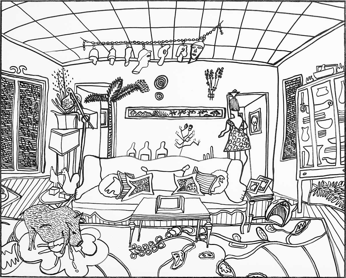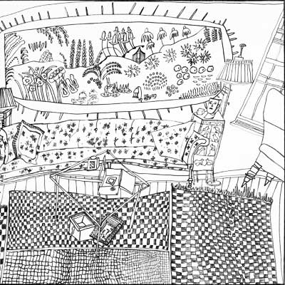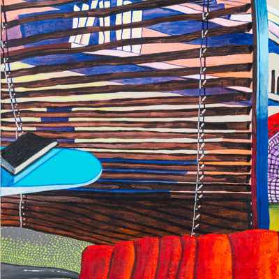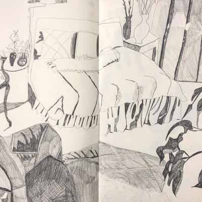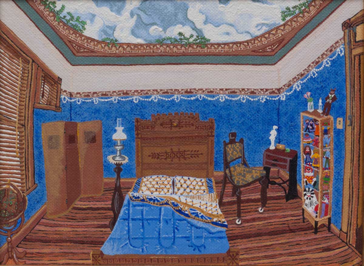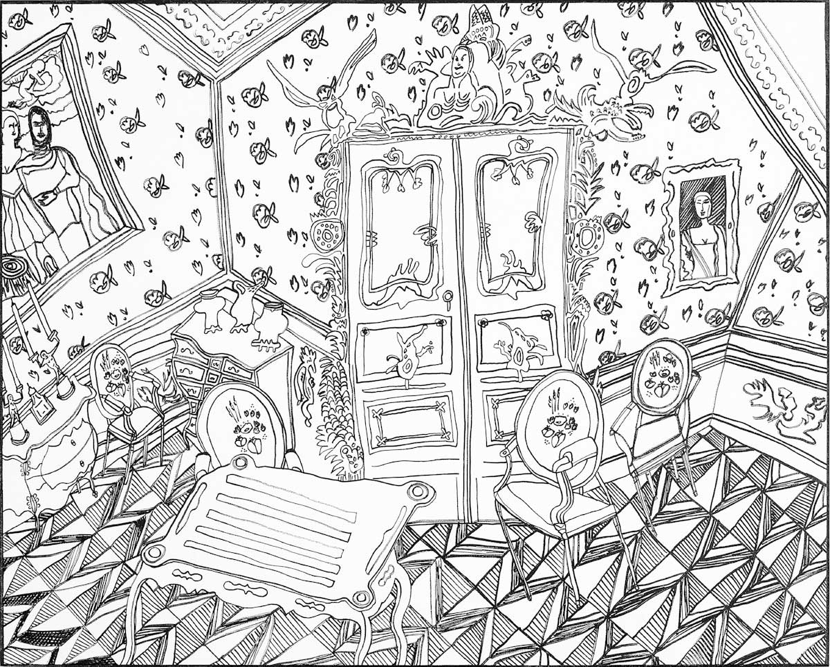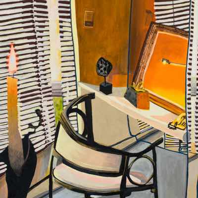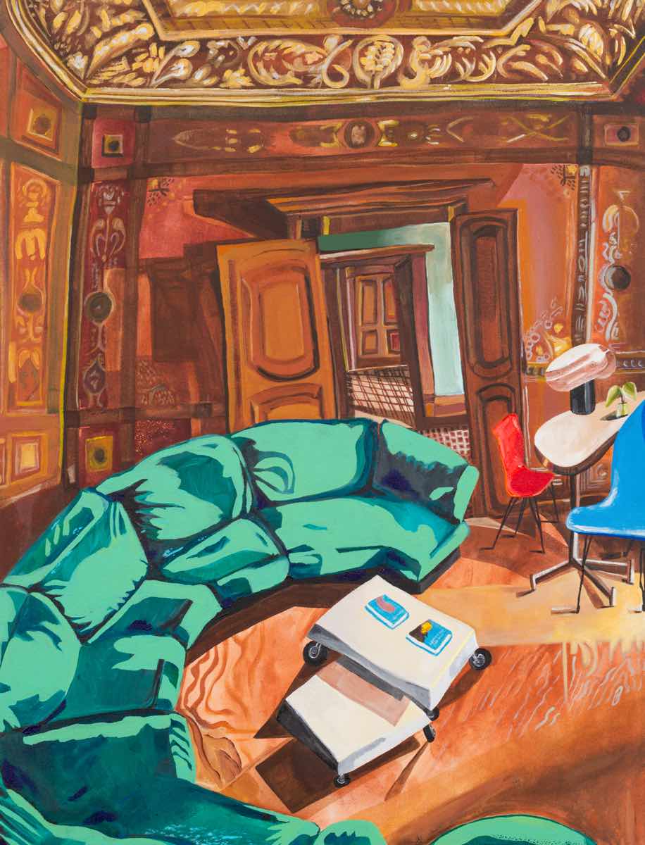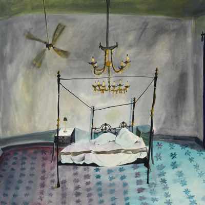 Gallery-Ox-Bow Centennial: Historic. In the East Wing of the gallery, CvsD spotlights new work by Chicago artist Gabrielle Garland. Garland’s intimate paintings focus on interior spaces – brilliantly colored, delightfully warped unpopulated domestic scenes. Her larger, slightly Hockneyesque graphite drawings feature landscape and architecture, with a dazzling range of marks from wild and expressionistic to fastidious and precise.