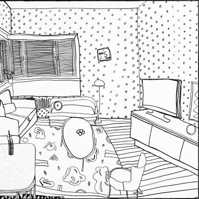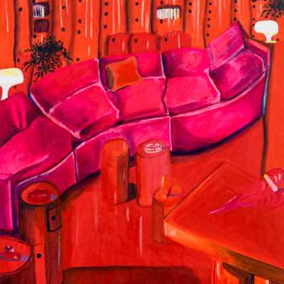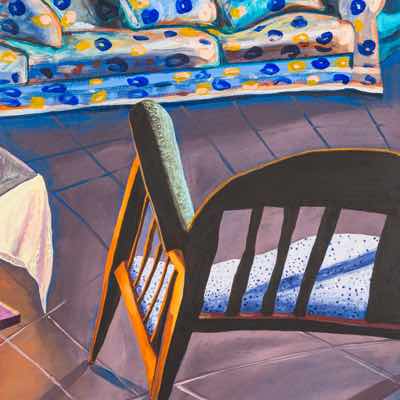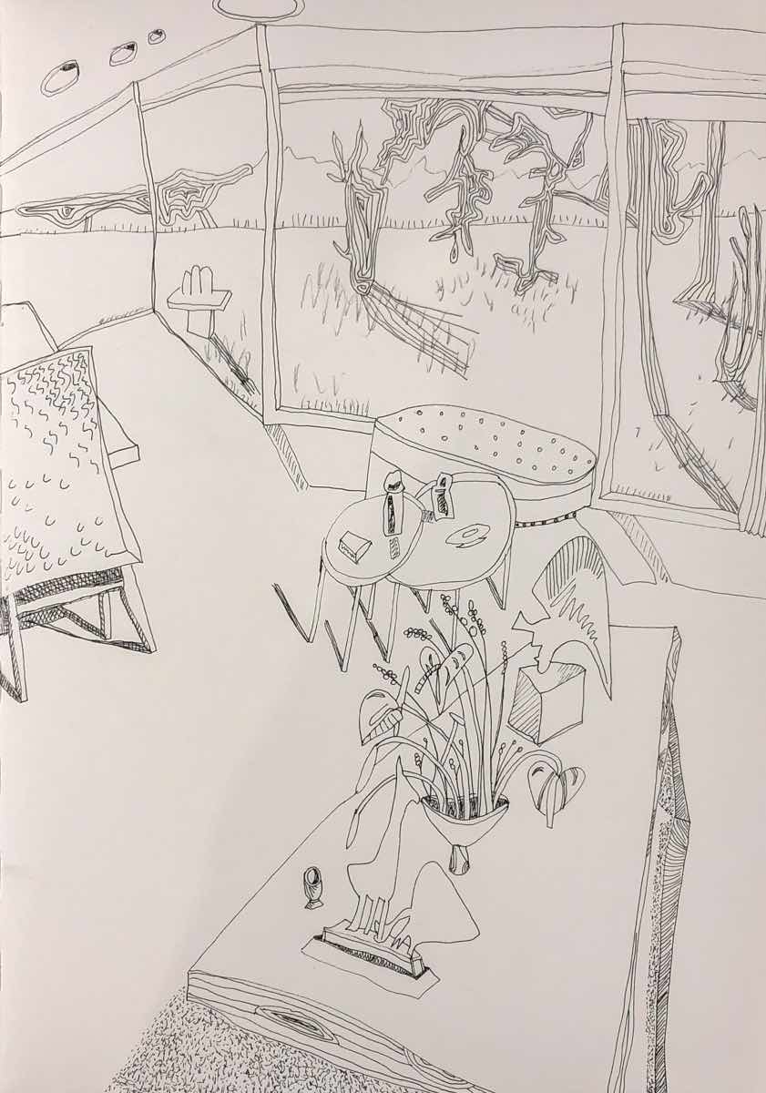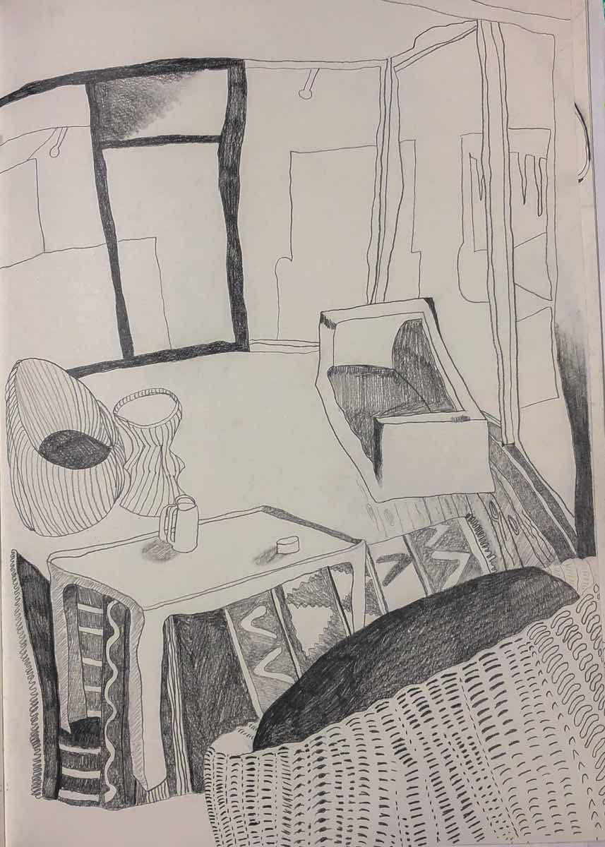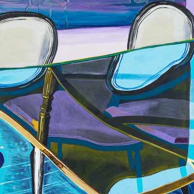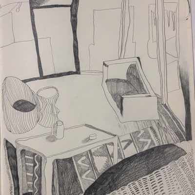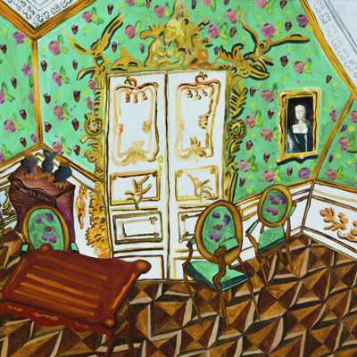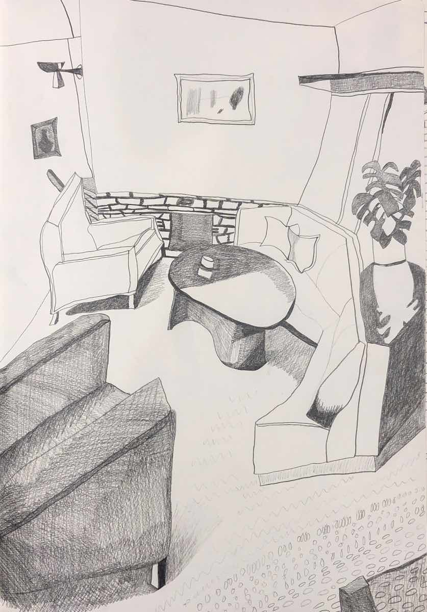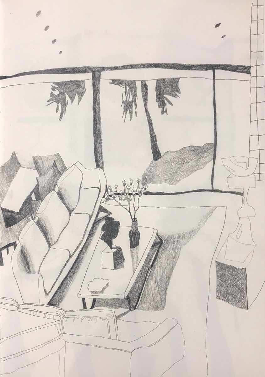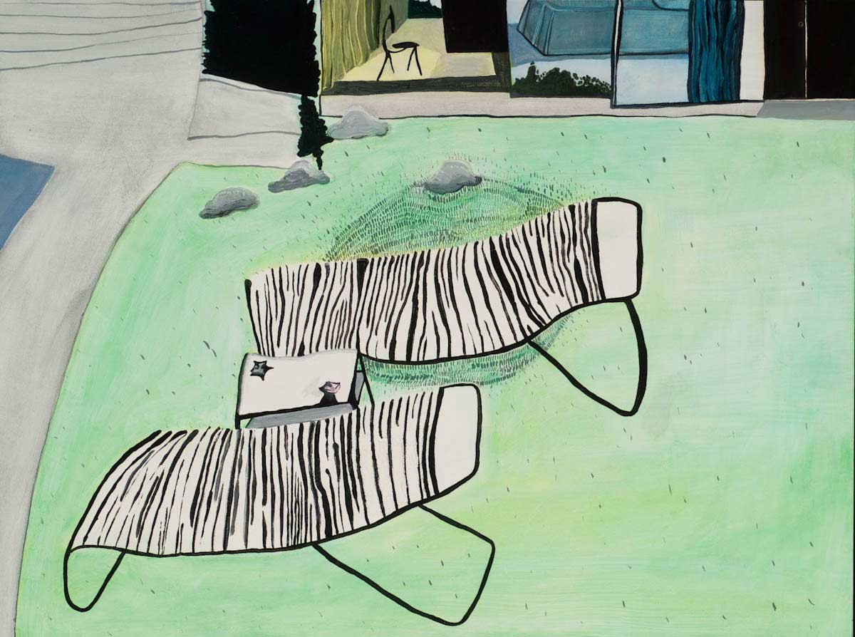 Gallery-Ox-Bow Centennial: Historic. In the East Wing of the gallery, CvsD spotlights new work by Chicago artist Gabrielle Garland. Garland’s intimate paintings focus on interior spaces – brilliantly colored, delightfully warped unpopulated domestic scenes. Her larger, slightly Hockneyesque graphite drawings feature landscape and architecture, with a dazzling range of marks from wild and expressionistic to fastidious and precise.