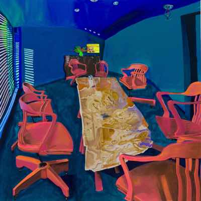 Painting featured accompanying a review of the novel "Office Politics" by Wilfrid Sheed